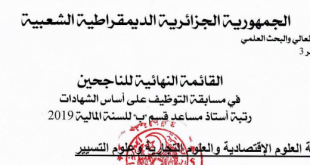 القائمة النهائية للناجحين في مسابقة التوظيف على أساس الشهادات رتبة أستاذ مساعد قسم ب للسنة المالية 2019