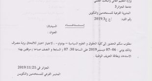 لاجتياز اختبار للالتحاق برتبة متصرف يومي 6و 7 ديسمبر 2019 على الساعة 7.30