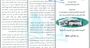 من تنظيم كلية علوم الاعلام والاتصال وبالتعاون مع مخبر البحث ” التشريعات الإعلامية واخلاقيات المهنة في الجزائر” يوم 25 أكتوبر2022 . هام: كان مبرمج انعقاده يوم 25 جوان 2022. وتم تاجيله الى التاريخ المدون اعلاه.