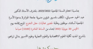 أكمل القراءة »حفل اختتام السنة الجامعية 2023/2022