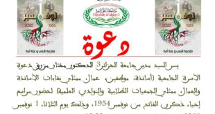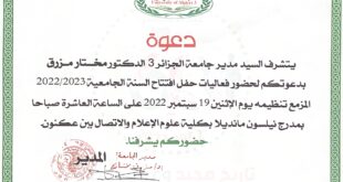 كلمة السيد مدير الجامعة الدكتور مختار مزرق بمناسبة افتتاح السنة الجامعية الجديدة 2022/2023