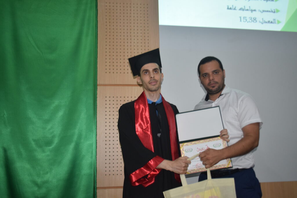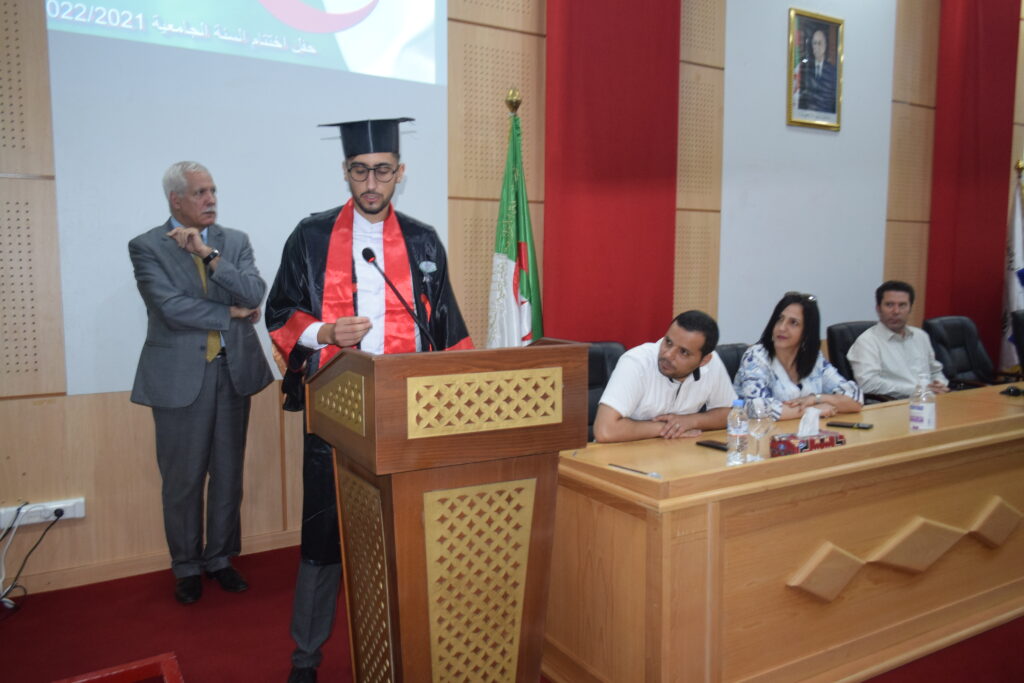ألقى خلاله السيد مدير الجامعة كلمة هنئ فيها الطلبة وأوليائهم بهذا التفوق متمنيا لهم مزيدا من النجاح والتفوق في حياتهم العلمية والعملية من جهة، وتقدم من جهة أخرى بكلمة شكر وتقدير وعرفان إلى جميع مكونات الأسرة الجامعية أعرب فيها عن سعادته بمساهمتهم في ترقية العلم وعلى تأدية مهامهم على أكمل وجه.