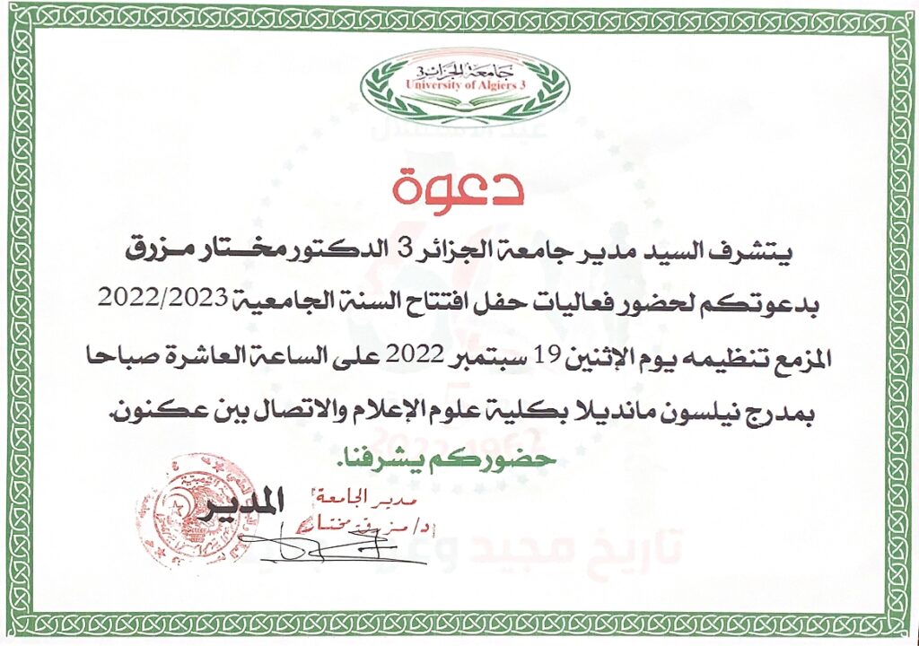 دعوة لحضور فعاليات حفل افتتاح السنة الجامعية 2023/2022 15 سبتمبر، 2022 أخبار الجامعة, نشاطات, نيابة مديرية الجامعة للعلاقات الخارجية 1,915 زيارة شاركها tweet