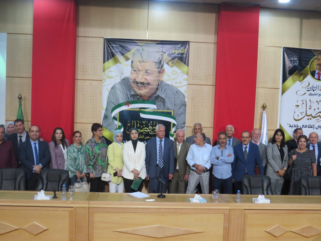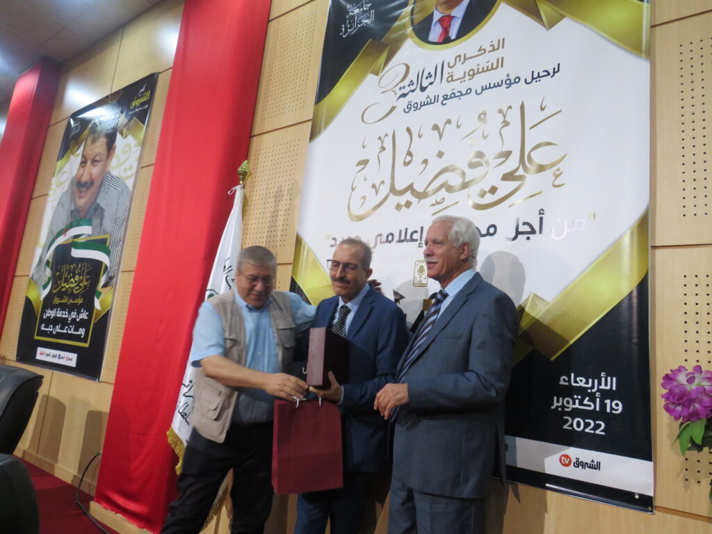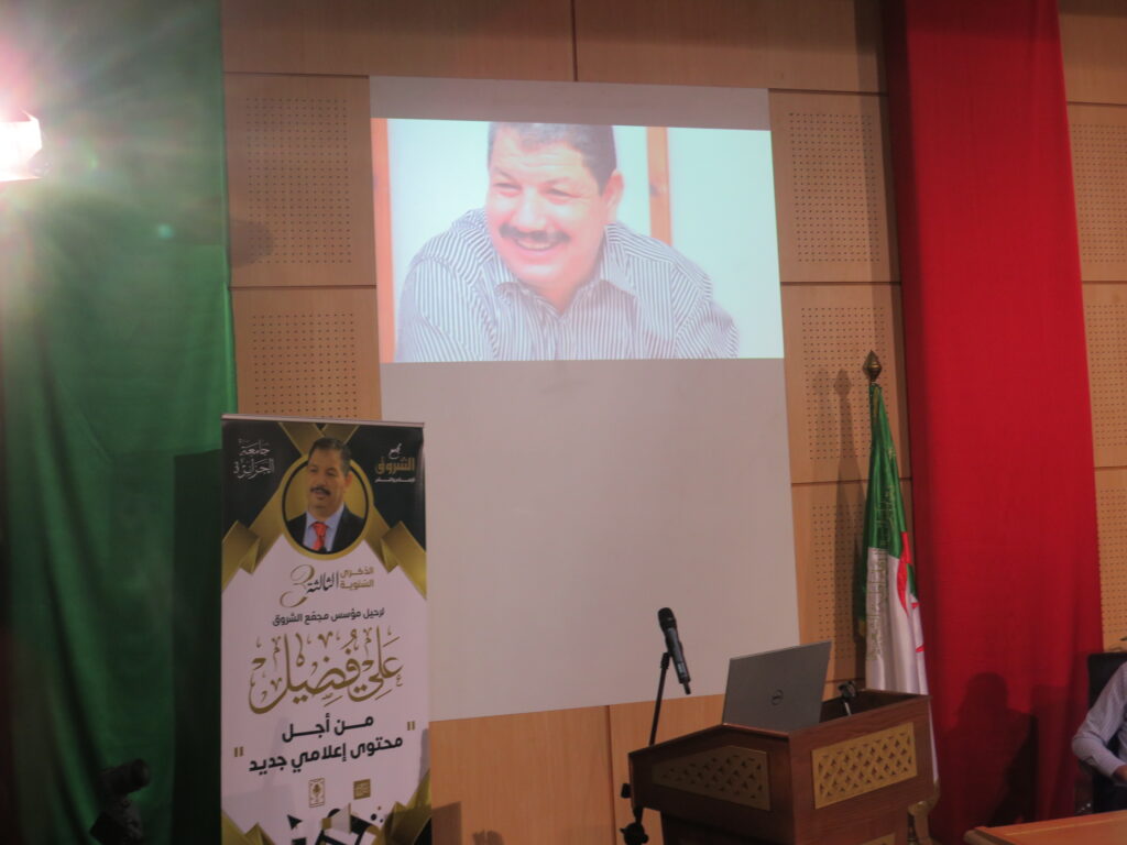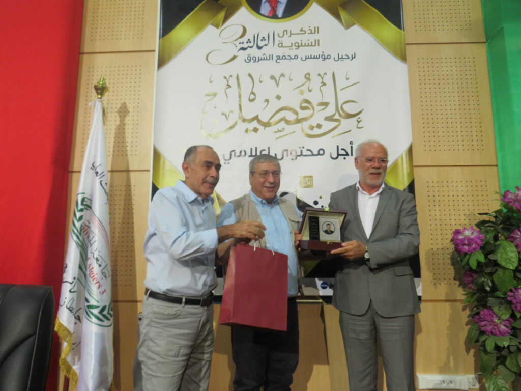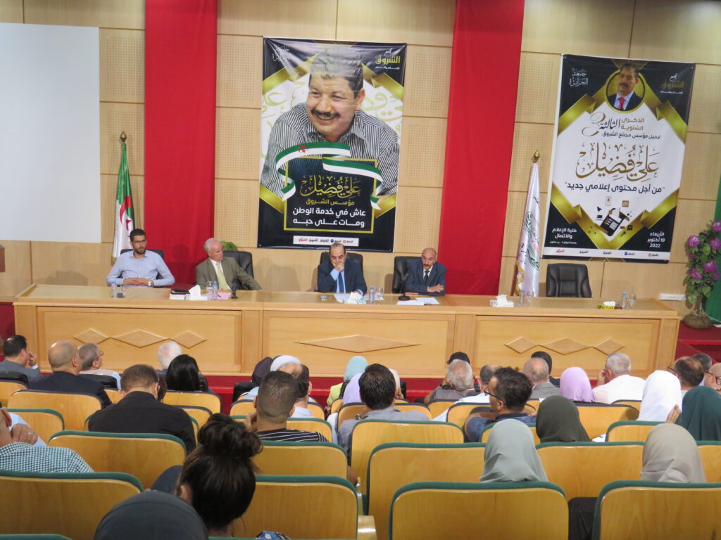 إحياء الذكرى السنوية الثالثة لرحيل مؤسس مجمع الشروق علي فضيل بجامعة الجزائر 3: من أجل محتوى إعلامي جديد 23 أكتوبر، 2022 أخبار الجامعة, نيابة مديرية الجامعة للعلاقات الخارجية 1,590 زيارة شاركها tweet