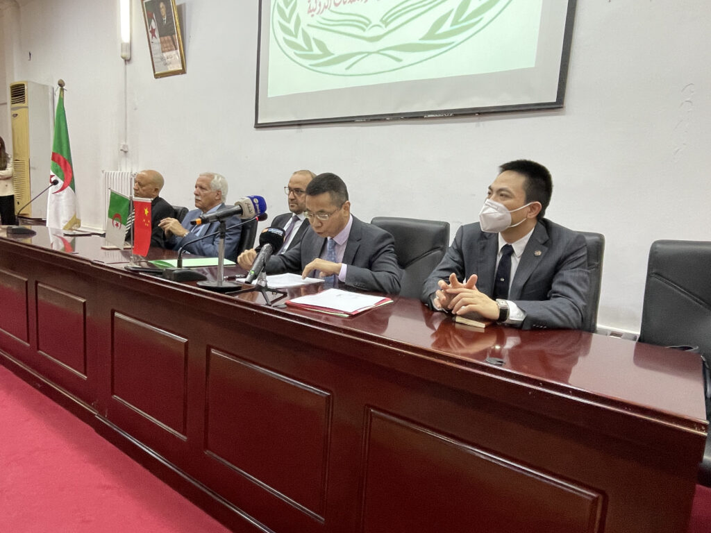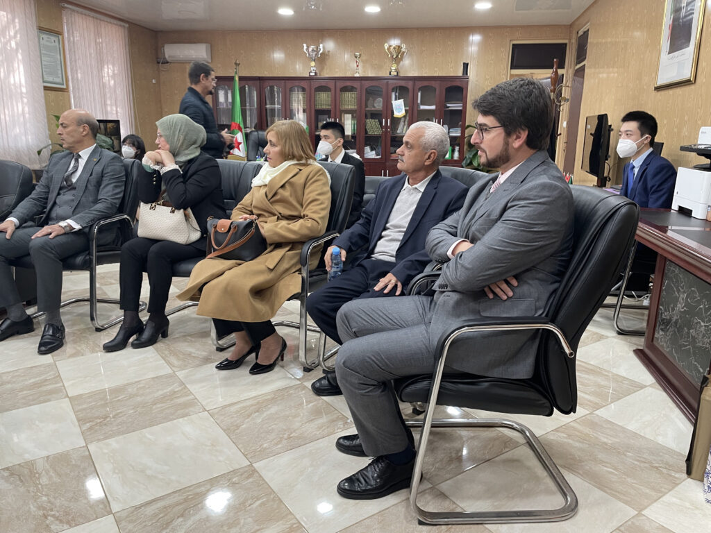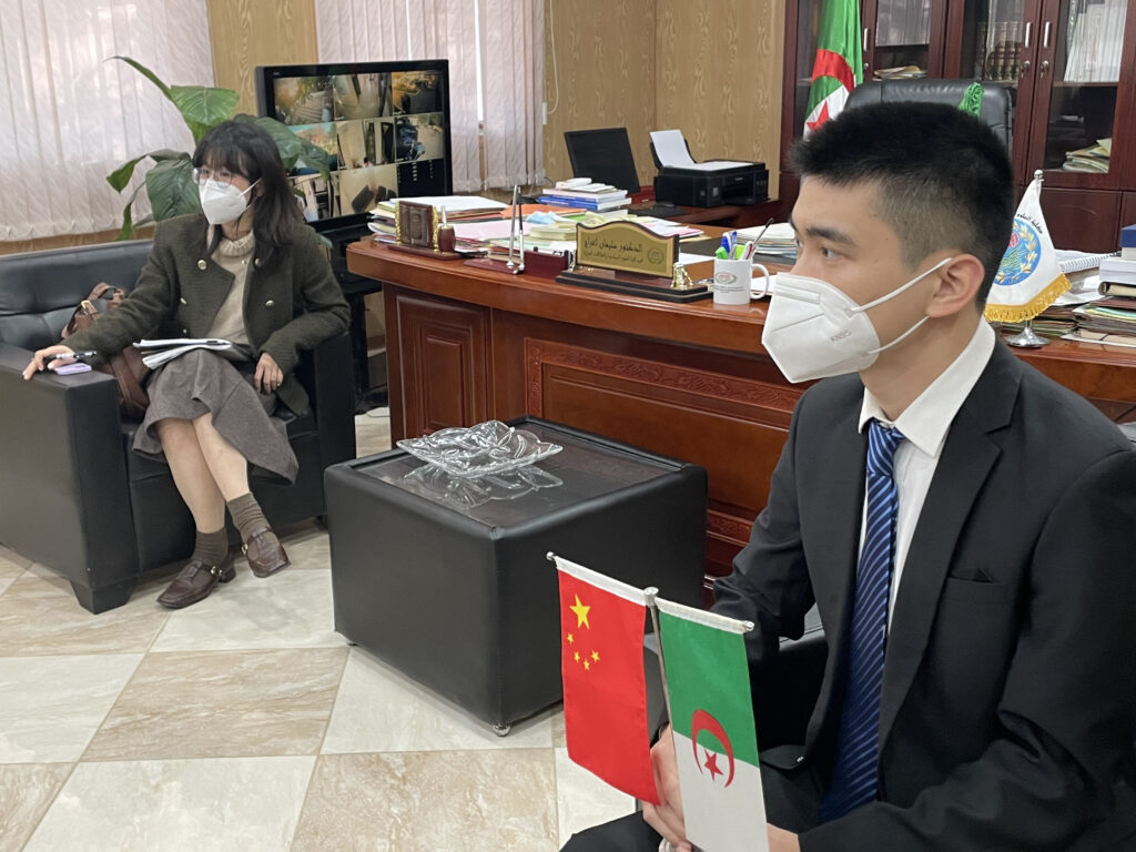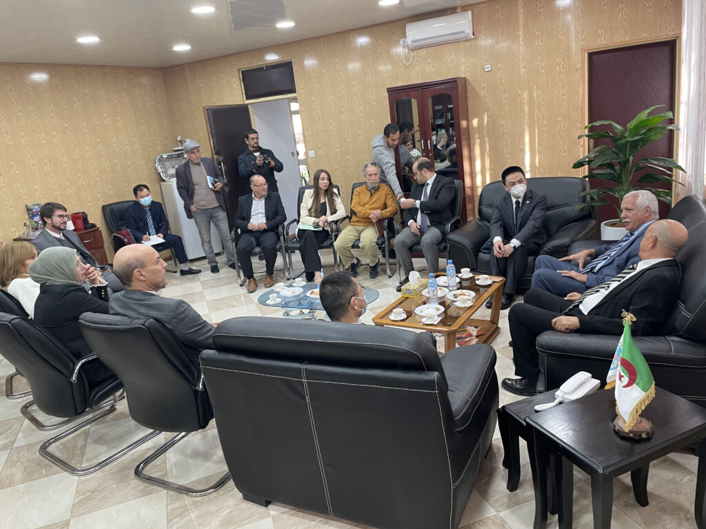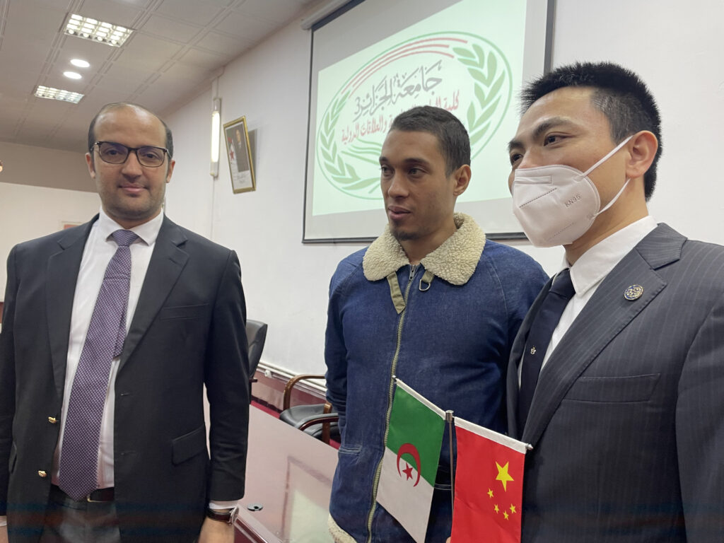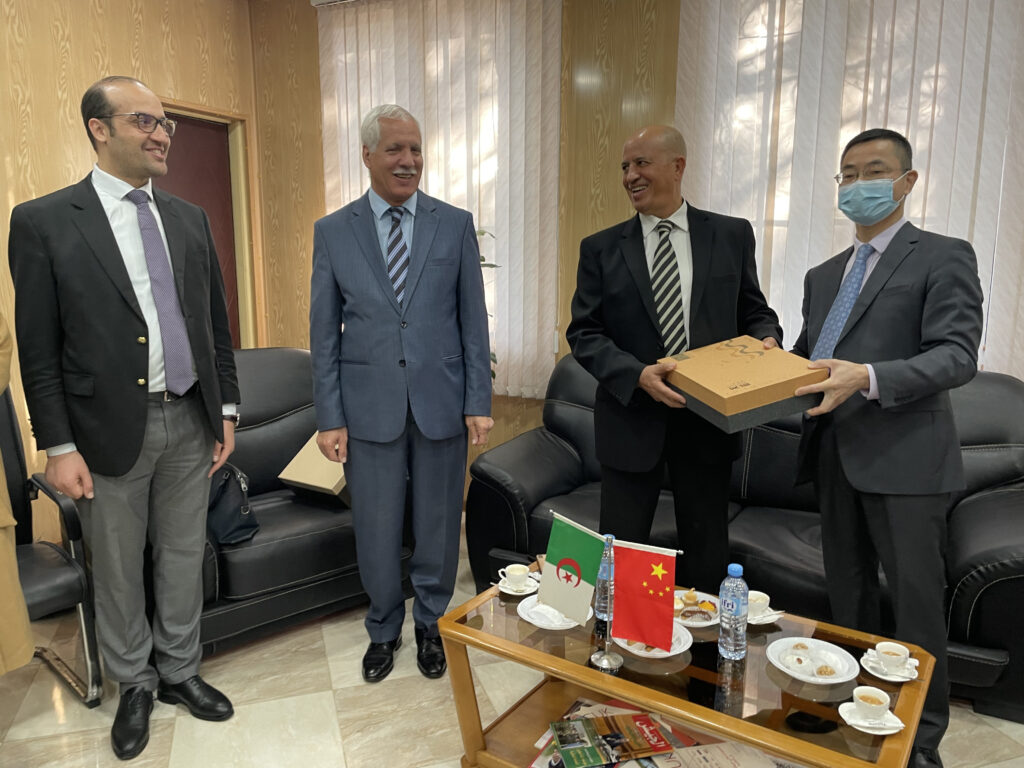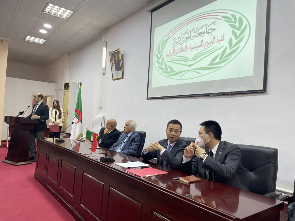 صور من زيارة السيد تيان جين Qian Jin القائم بأعمال سفارة جمهورية الصين الشعبية بالجزائر والوفد المرافق لكلية العلوم السياسية والعلاقات الدولية بجامعة الجزائر3 24 نوفمبر، 2022 أخبار الجامعة, لقاءات, نيابة مديرية الجامعة للعلاقات الخارجية 1,209 زيارة شاركها tweet