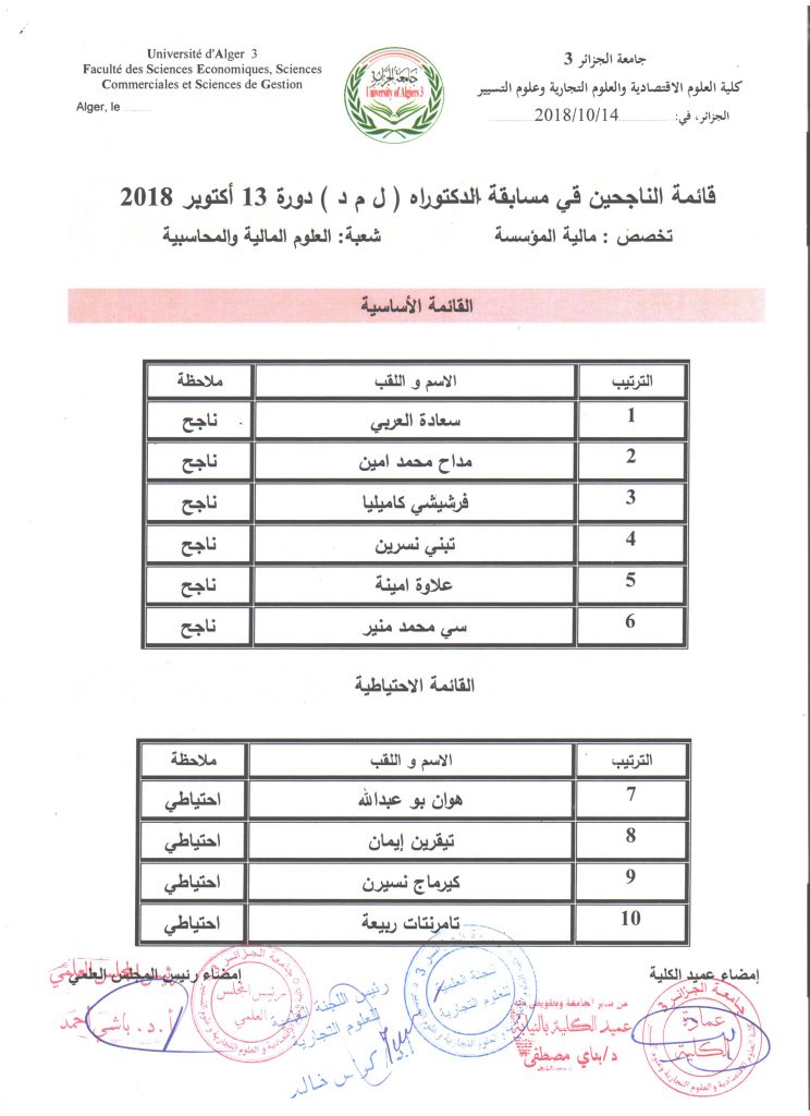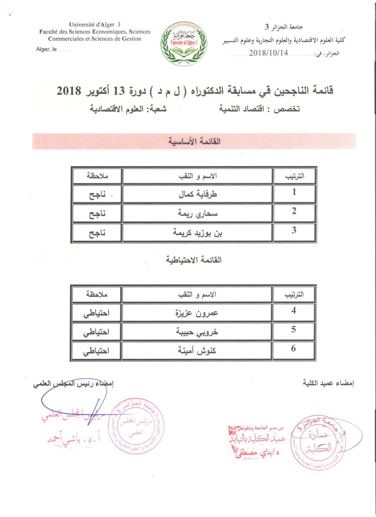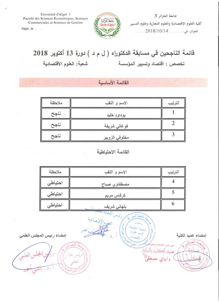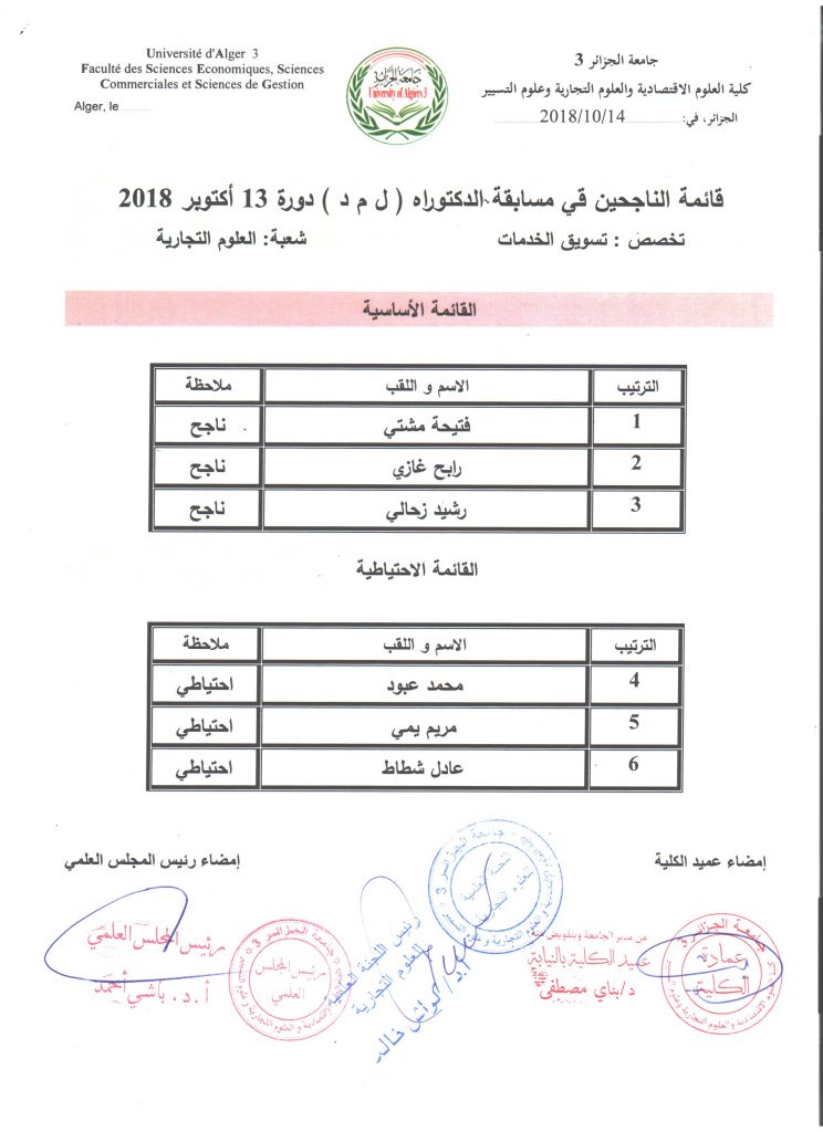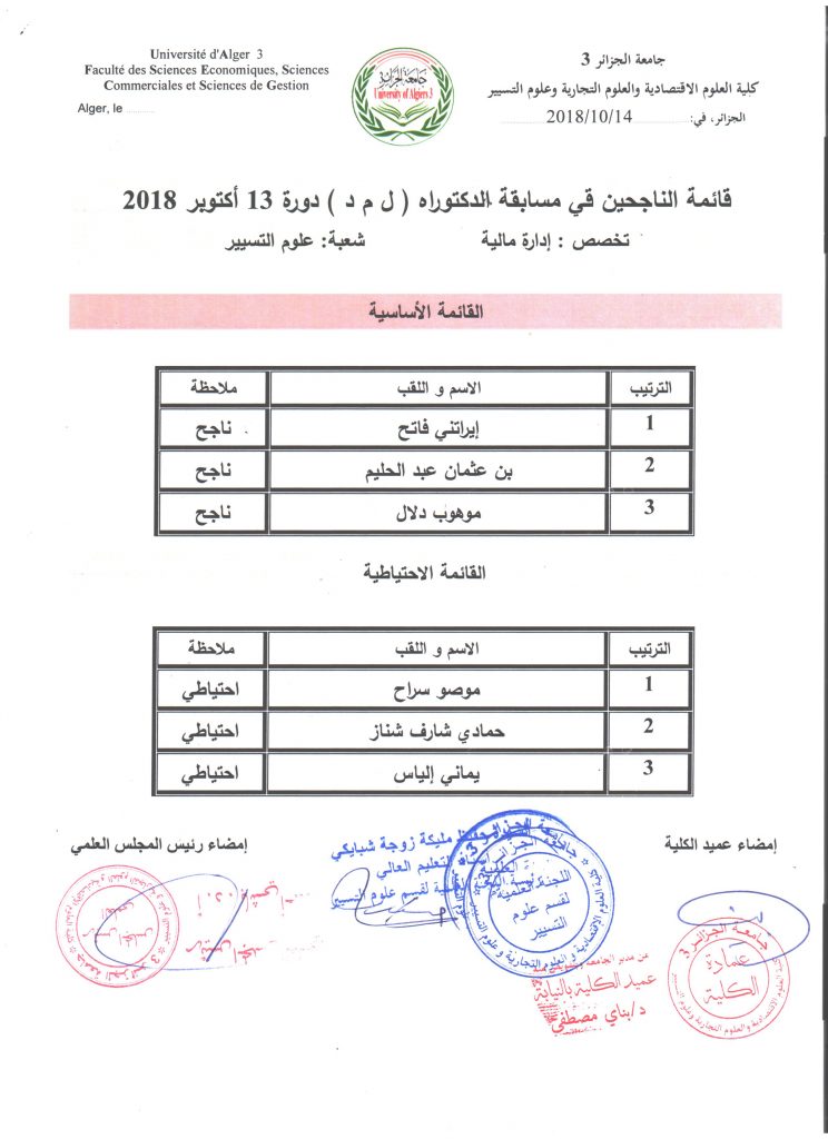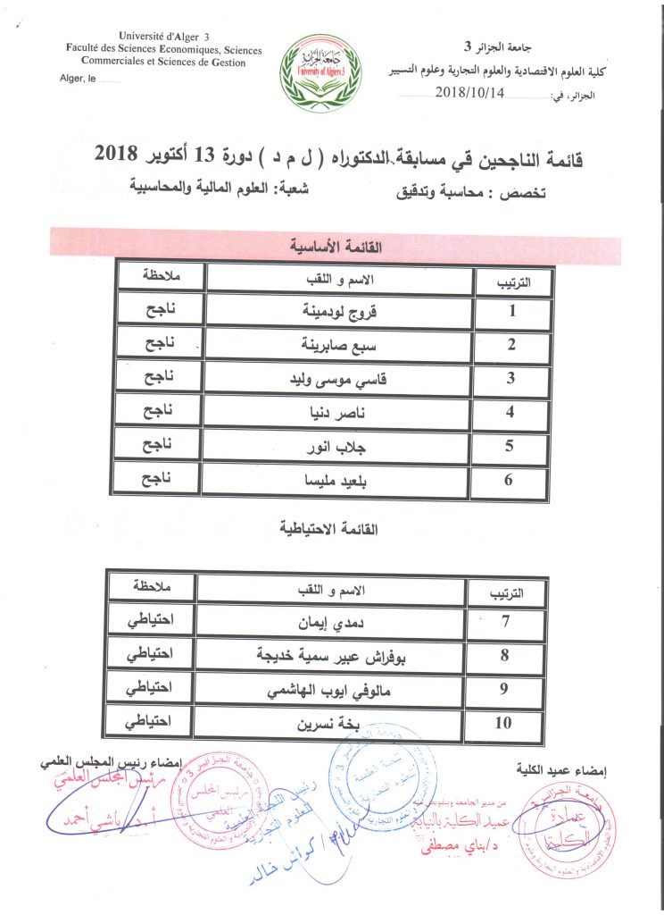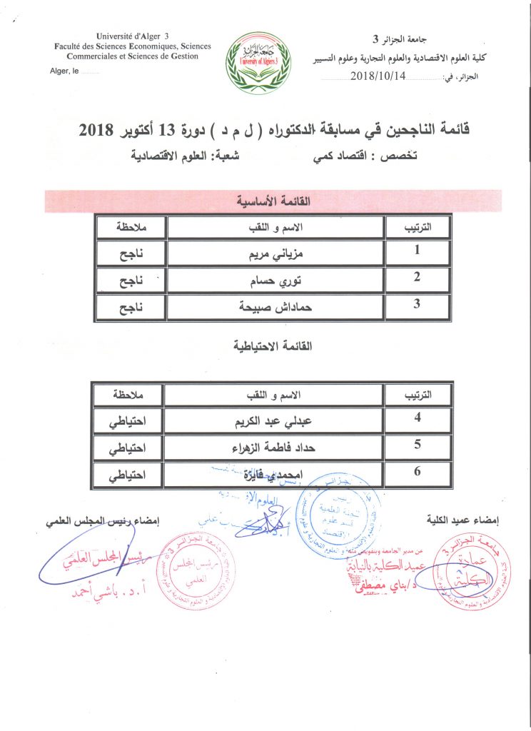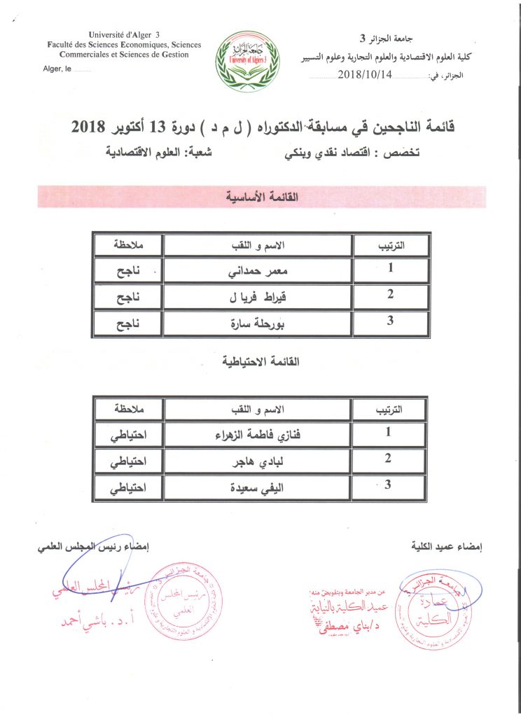 يشرفتا الإعلان عن قوائم الناجحين في مسابقة الالتحاق بالتكوين في الطور الثالث بعنوان السنة الجامعية 2018-2019 .