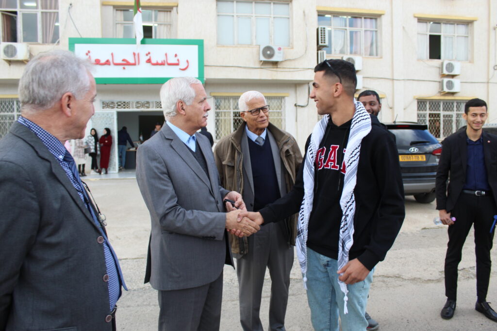 نظمت جامعة الجزائر3 بالتنسيق مع المتحف الوطني للمجاهد يوم الثلاثاء 29 نوفمبر 2022 زيارة للمتحف الوطني للمجاهد، انطلقت من مقر رئاسة الجامعة أين ألقى السيد مدير الجامعة الدكتور مختار مزرق كلمة بهذه المناسبة التي تزامنت والاحتفال باليوم العالمي للتضامن مع الشعب الفلسطيني شاكرا من خلالها طلبة الجامعة وخاصة الطلبة الدوليين الممثلين لمختلف الجنسيات العربية تلبيتهم للدعوة، ومتمنيا لهم زيارة طيبة ومفيدة للمتحف. وأشرف على نقلهم إلى المتحف مرورا بسفارة فلسطين بالجزائر السيد نائب مدير الجامعة للعلاقات الخارجية وإطارات من الجامعة حيث كان في استقبالهم مديرة المتحف الوطني للمجاهد وإطارات سامية من وزارة المجاهدين وذوي الحقوق ومجاهدين حضروا لاستقبالهم برنامجا ثريا وخاص بالزيارة جاء في مستهلها جولة في مختلف أجنحة المعرض بالمتحف من جناح المقاومة الشعبية، المقاومة السياسة وجناح الثورة التحريرية والاعلان عن الاستقلال، أين تعرفوا عن التاريخ الجزائري المجيد والتضحيات الجسام للمجاهدين وشهداء الجزائر.
