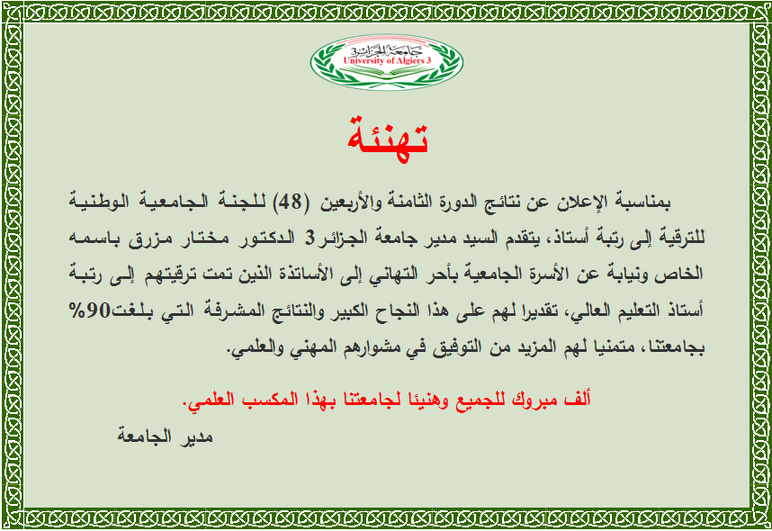 تهنئة 11 ديسمبر، 2022 أخبار الجامعة, تهنئة, نيابة مديرية الجامعة للعلاقات الخارجية 1,386 زيارة شاركها tweet
