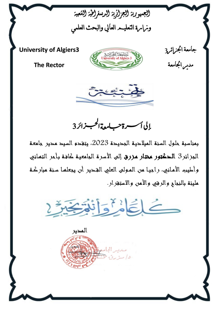 تهنئة السنة الميلادية الجديدة 2023 31 ديسمبر، 2022 أخبار الجامعة, مستجدات الجامعة 1,727 زيارة شاركها tweet