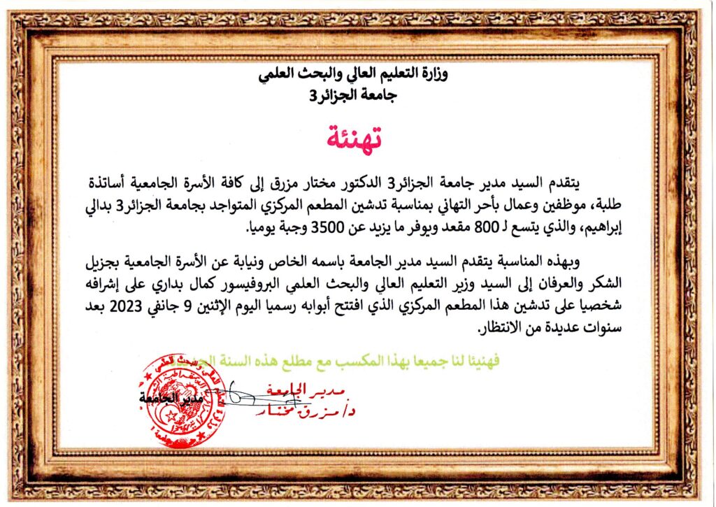 تهنئة 9 يناير، 2023 أخبار الجامعة, تهنئة, نيابة مديرية الجامعة للعلاقات الخارجية 1,110 زيارة شاركها tweet