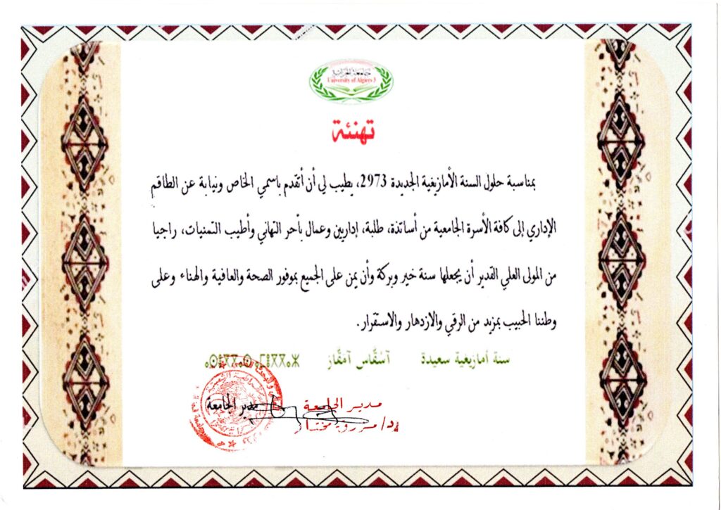 سنة أمازيغية سعيدة 2973 11 يناير، 2023 أخبار الجامعة, تهنئة, نيابة مديرية الجامعة للعلاقات الخارجية 1,799 زيارة شاركها tweet