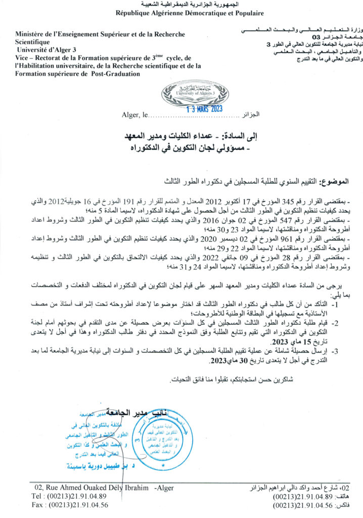 13 مارس، 2023 أخبار الجامعة, مستجدات الجامعة, نيابة مديرية الجامعة لما بعد التدرج و البحث العلمي 1,436 زيارة شاركها tweet