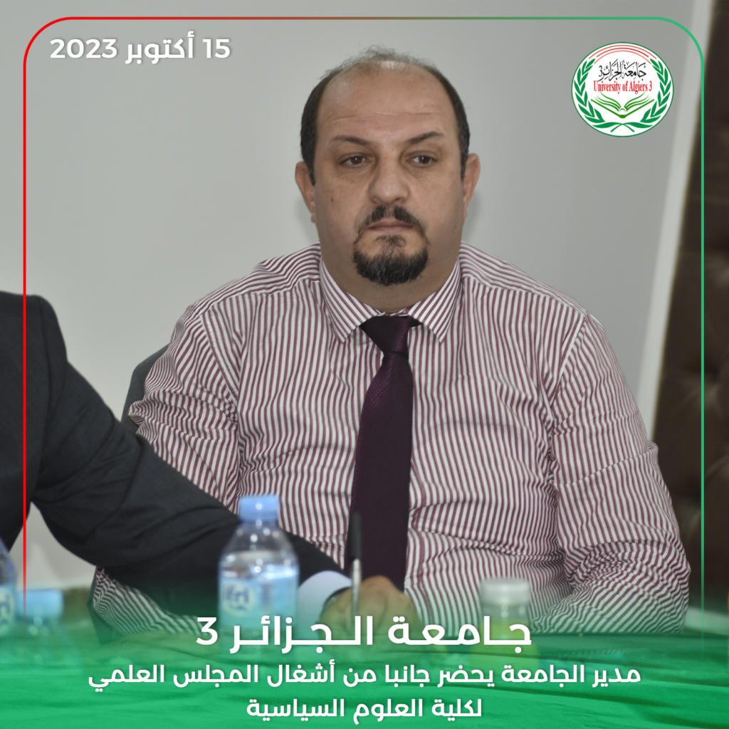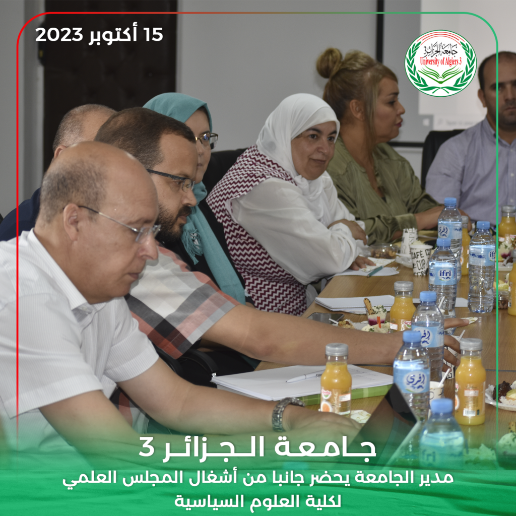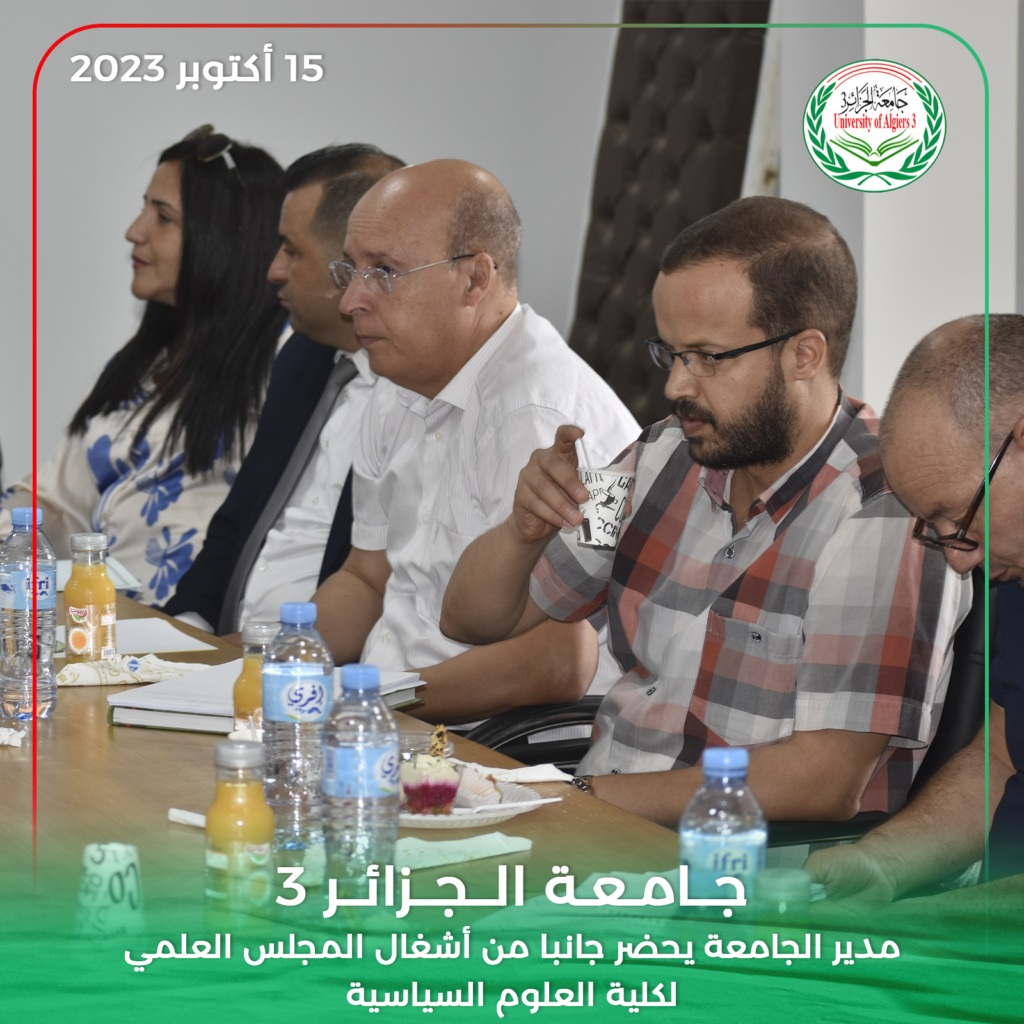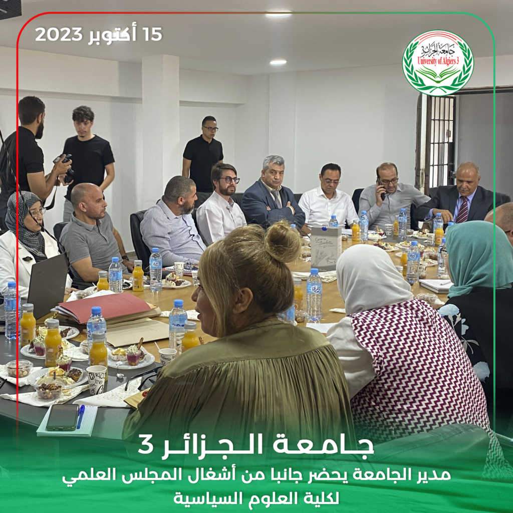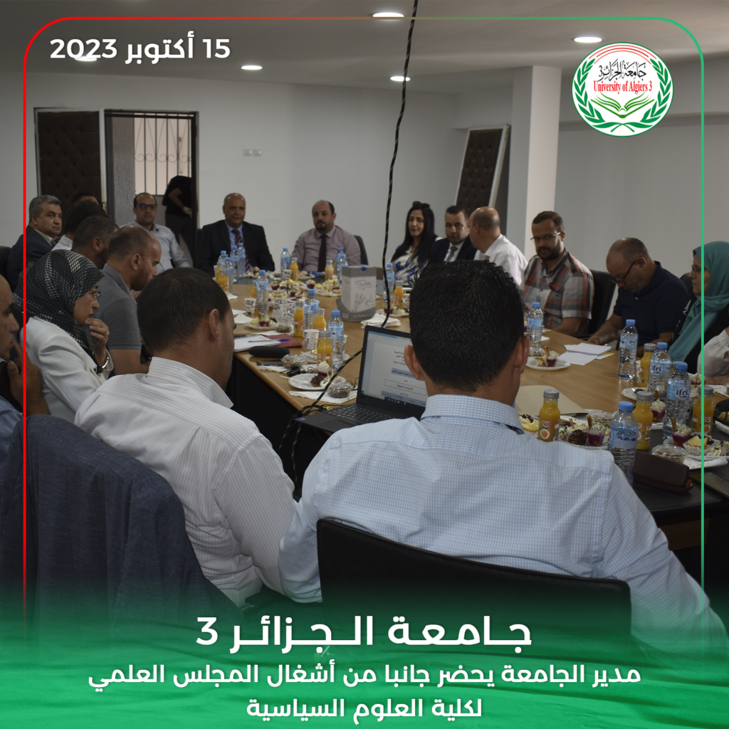 حضر مدير جامعة الجزائر 3 البروفيسور خالد رواسكي اليوم الأحد 15 أكتوبر 2023 أشغال الدورة العادية للمجلس العلمي لكلية العلوم السياسية والعلاقات الدولية بمقر الكلية بين عكنون.