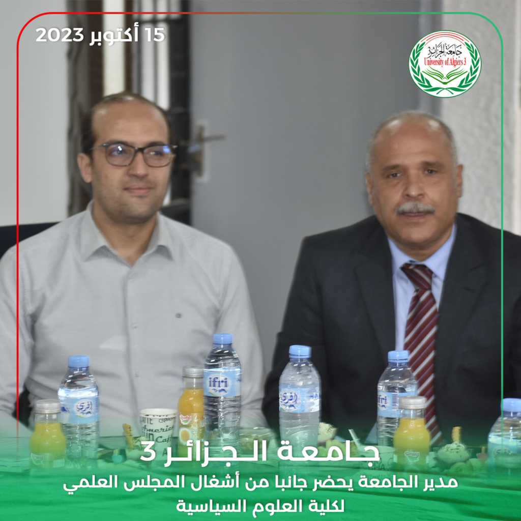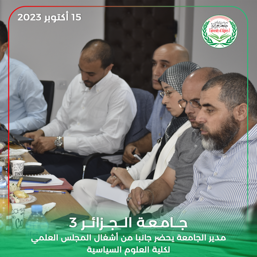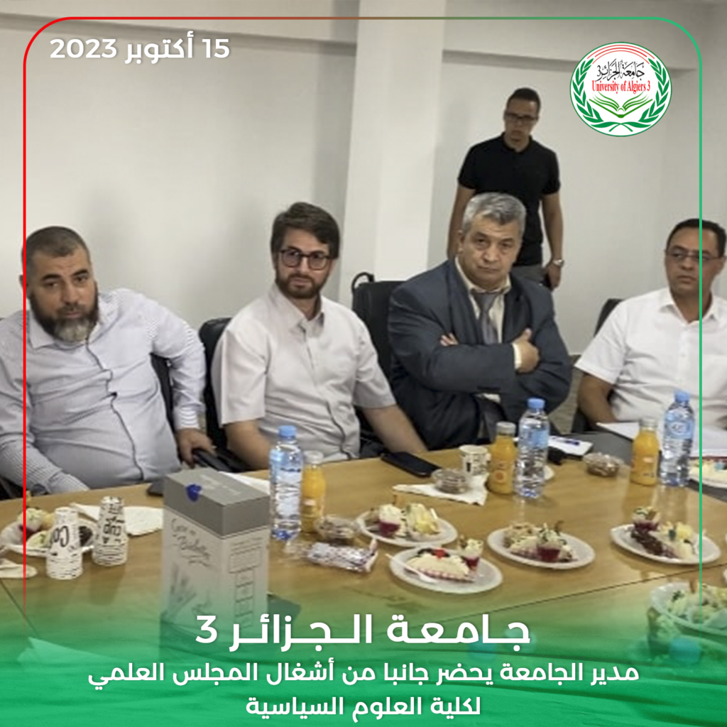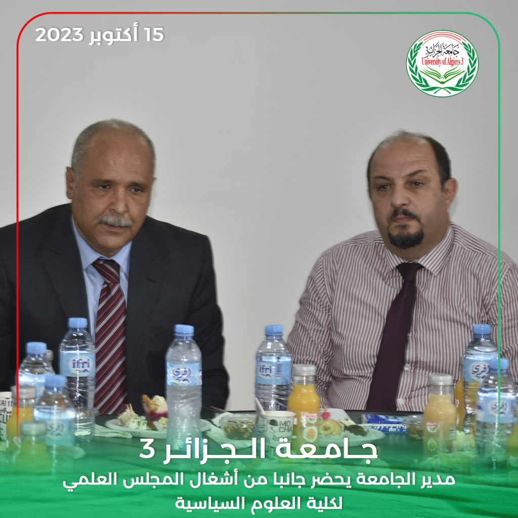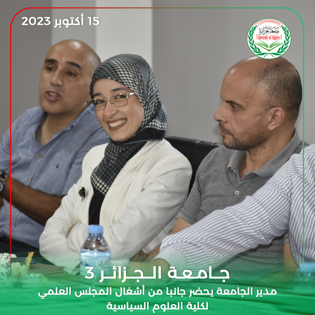 حضر مدير جامعة الجزائر 3 البروفيسور خالد رواسكي اليوم الأحد 15 أكتوبر 2023 أشغال الدورة العادية للمجلس العلمي لكلية العلوم السياسية والعلاقات الدولية بمقر الكلية بين عكنون.