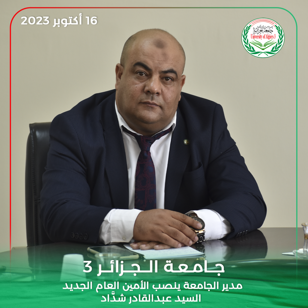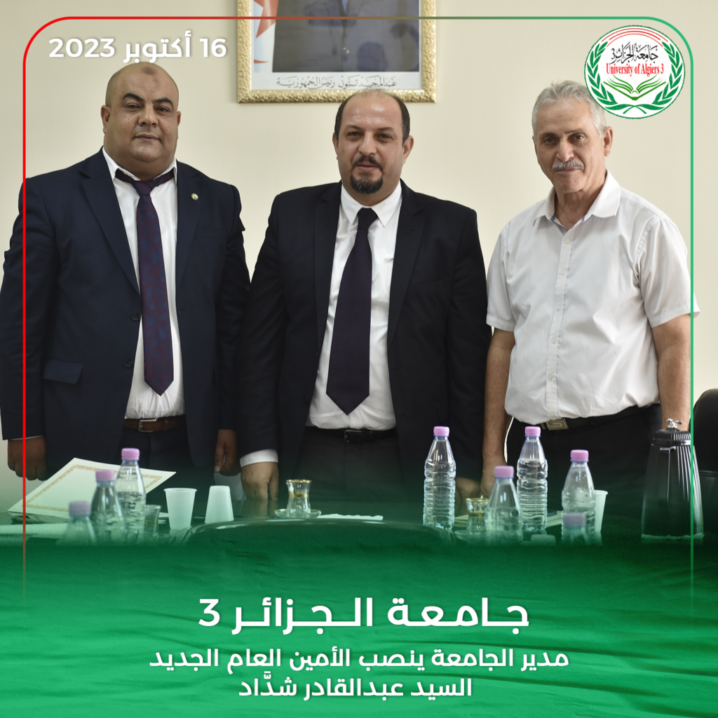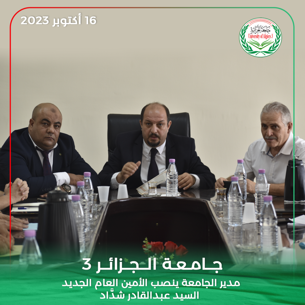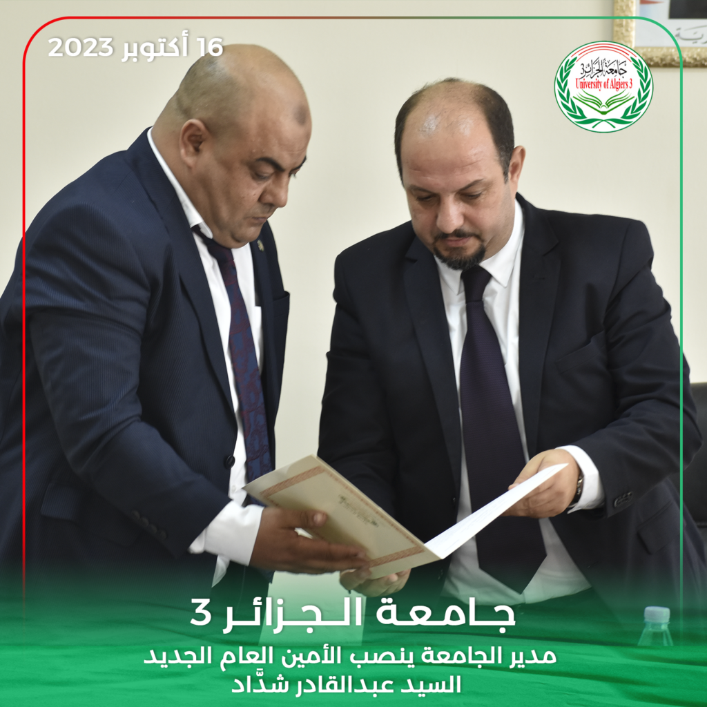 أشرف مدير جامعة الجزائر 3 البروفيسور خالد رواسكي صباح اليوم الأحد 16 أكتوبر 2023 على مراسم تنصيب السيد عبد القادر شداد أمينا عاما لجامعة الجزائر 3 خلفا للسيد أحسن بن يعقوب.