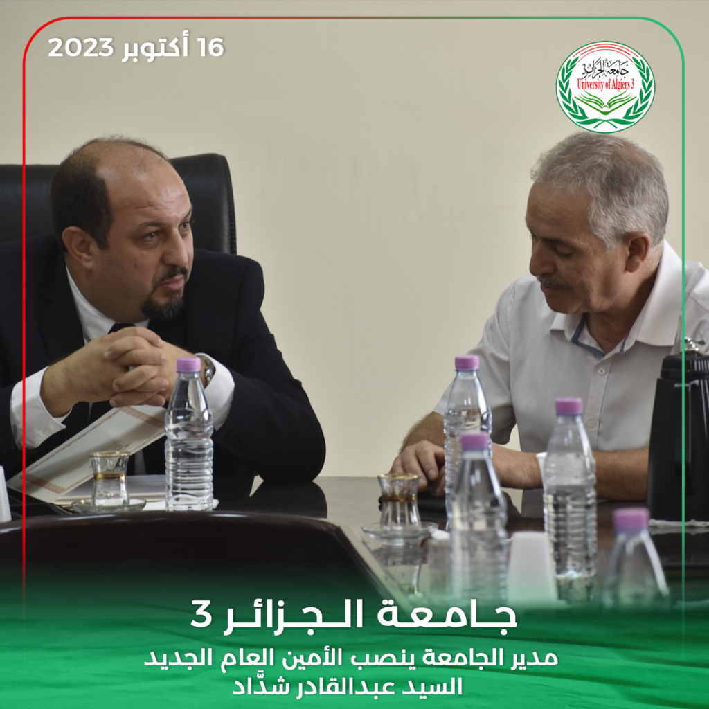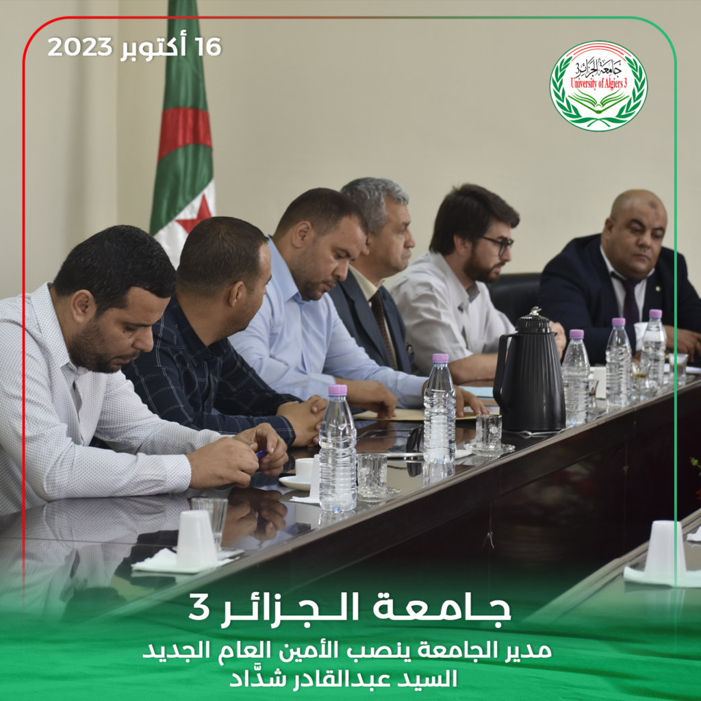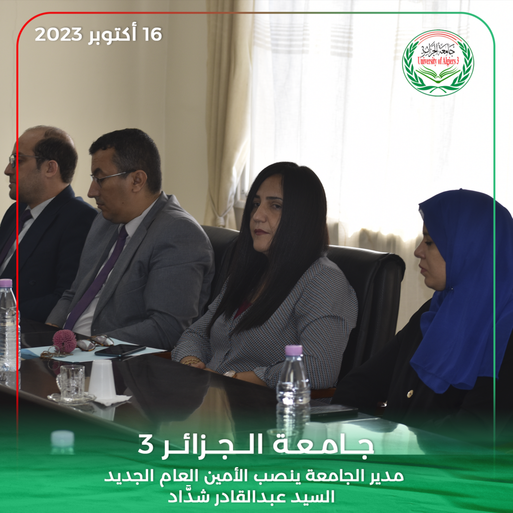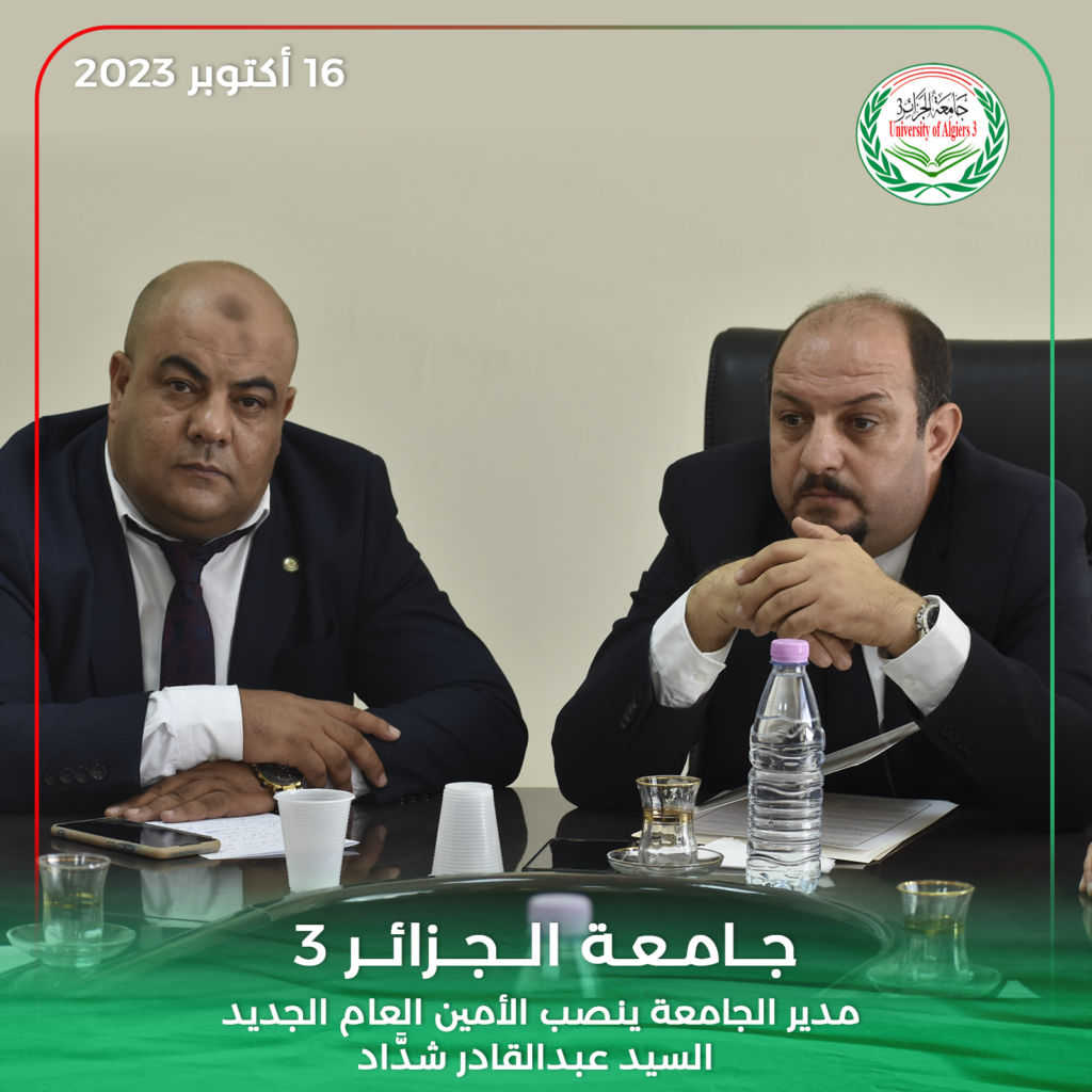 أشرف مدير جامعة الجزائر 3 البروفيسور خالد رواسكي صباح اليوم الأحد 16 أكتوبر 2023 على مراسم تنصيب السيد عبد القادر شداد أمينا عاما لجامعة الجزائر 3 خلفا للسيد أحسن بن يعقوب.