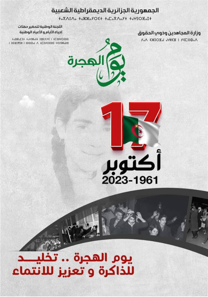 يشرفني أن أدعوكم للوقوف دقيقة صمت يوم الثلاثاء 17 أكتوبر 2023 على الساعة الحادية عشر (11:00) صباحا أمام النصب التذكاري المخلد لذكرى يوم الطالب 19 ماي بالمدخل الرئيسي للجامعة بدالي ابراهيم، ترحما على أرواح شهداء مجازر 17 أكتوبر 1961 التي حدثت بالعاصمة الفرنسية باريس.