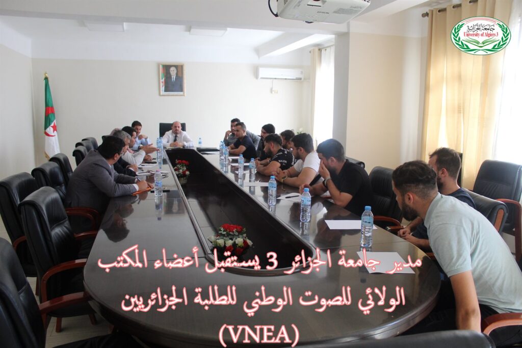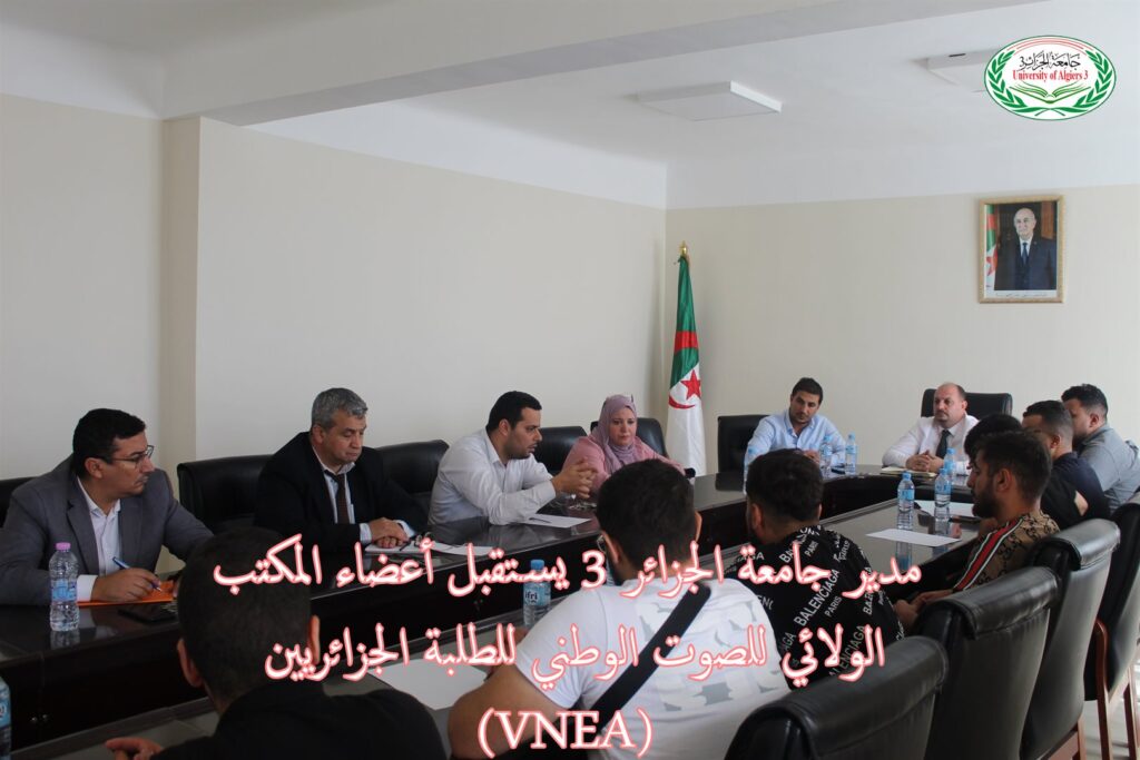 استقبل مدير جامعة الجزائر 3 البروفيسور خالد رواسكي مساء اليوم الخميس 26 أكتوبر 2023 أعضاء المكتب الولائي لتنظيم الصوت الوطني للطلبة الجزائريين VNEA ، قصد الاستماع لانشغالات الطلبة وإيجاد الحلول، وذلك في إطار سلسلة اللقاءات التشاورية مع مختلف التنظيمات الطلابية المعتمدة من قبل وزارة التعليم العالي والبحث العلمي.