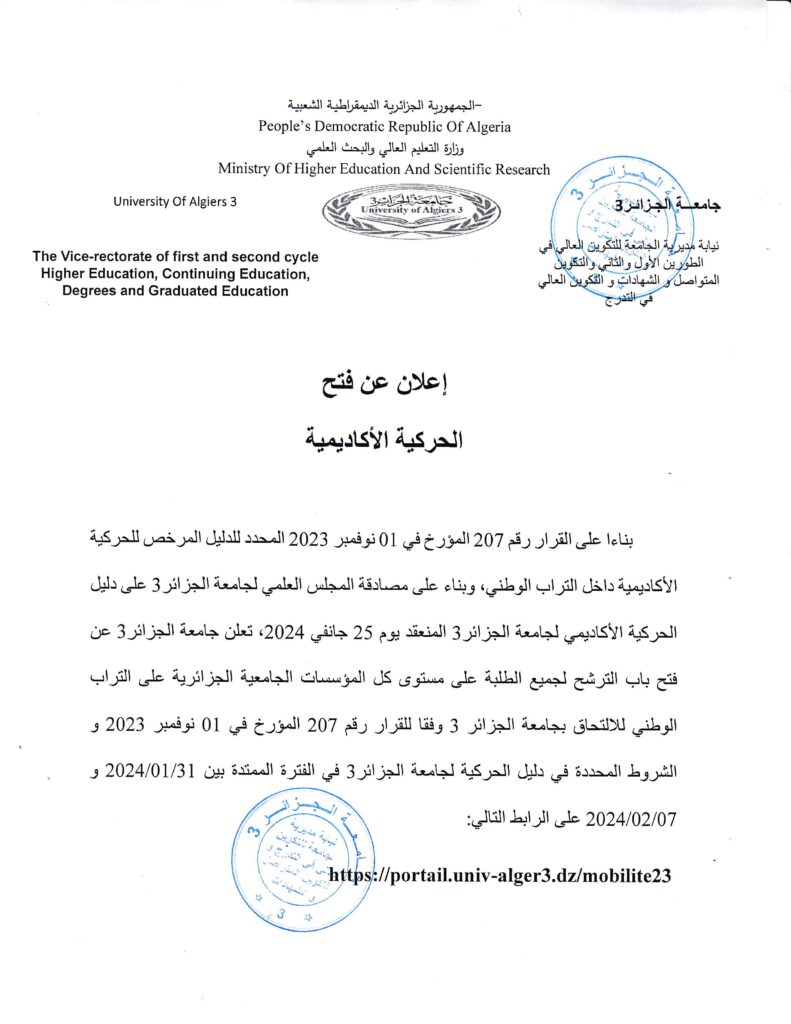 إعلان عن فتح الحركية الأكاديمية 31 يناير، 2024 أخبار الجامعة, مستجدات الجامعة 1,390 زيارة شاركها tweet