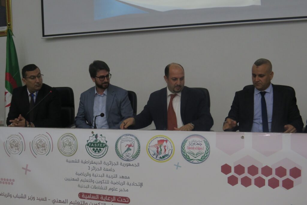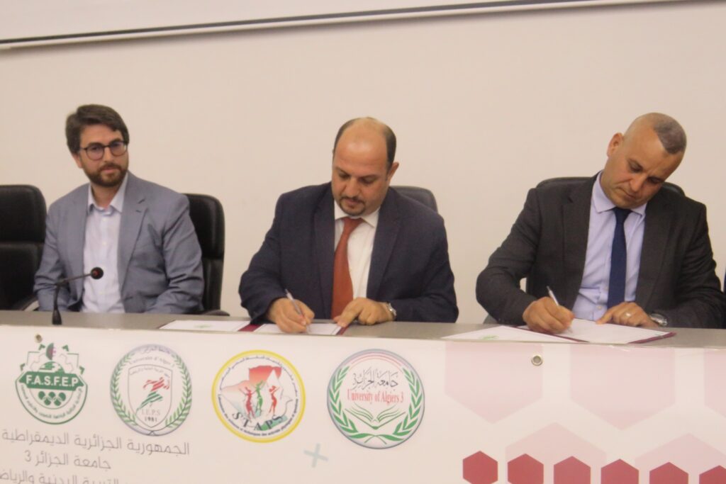في إطار الاستراتيجية الإصلاحية للوزارة الوصية، والرامية إلى تعزيز انفتاح الجامعة على محيطها الخارجي، أشرف سهرة يوم الاثنين 22 أفريل 2024 -على هامش الملتقى الوطني حول اسهامات علمية لتطوير الممارسة الرياضية في اوساط التكوين والتعليم المهنيين المنظم من طرف معهد التربية البدنية والرياضية تحت رعاية معالي وزير التعليم العالي والبحث العلمي- البروفيسور خالد رواسكي، مدير جامعة الجزائر 3 والسيد بن وسار عبد القادر رئيس الاتحادية الرياضية لتكوين والتعليم المهنيين على توقيع اتفاقية إطار في مجال التعاون والتبادل العلمي والثقافي والرياضي بين الجامعة والاتحادية، وهذا بحضور مسؤولين وإطارات والاساتذة والطلبة. وتهدف هذه الاتفاقية إلى تشجيع وتطوير التعاون في المجالات ذات الاهتمام المشترك لفائدة أساتذة وطلبة معهد التربية البدنية والرياضية من خلال وضع كافة الوسائل الممكنة من هياكل وموارد بشرية لتحقيق ذلك، حيث سيعمل الطرفين في إطار شراكة لترقية وتطوير الرياضة الجامعية والرياضة في مؤسسات التكوين والتعليم المهنيين كما ستشمل مجالات متعددة من شأنها صيانة و تحسين المرافق البيداغوجية والرياضية. للإشارة، فإن برنامج التعاون والشراكة يتضمن تبادل الخبرات، تكوين إطارات الاتحادية، رسكلة اساتذة التربية البدنية والرياضية المنتمين للمؤسسات التكوينية، مرافقة الاتحادية في مجال الرقمنة. بالإضافة إلى التنظيم المشترك للتظاهرات العلمية والأيام التحسيسية والأنشطة الثقافية والرياضية، وتطوير المناهج والبرامج التعليمية لمنتسبي التكوين والتعليم المهنيين، وكذا تنظيم تربصات ميدانية للطلبة والرياضيين. وفي الكلمة الاختتامية للسيد مدير الجامعة البروفيسور خالد رواسكي ثمن مجهودات أسرة معهد التربية البدنية والرياضية خاصة فيما يتعلق بترقية الجانب العلمي والبيداغوجي وجعل المعهد كقطب امتياز لترقية وتطوير الرياضة الجامعية، كما أكد انه يولي اهمية بالغة لجعل المعهد في المكانة التي يستحقها خاصة انه يزخر بكفاءات علمية اثبتت وجودها في مختلف الهيئات الرياضية داخل وخارج الوطن. كما أكد السيد مدير الجامعة البروفيسور خالد رواسكي انه سيوفر كل الإمكانيات المادية لتحسين عمل المخابر التابعة للمعهد والجامعة قصد المواصلة في العمل العلمي والبحثي بما يتماشى مع إستراتيجية الحديثة لوزارة التعليم العالي والبحث العلمي التي تولي اهمية كبيرة لرفع من المرئية والرقمنة وتحسين التكوين البيداغوجي، وتنويع مشاريع التكوين، وتطوير التكوين باللغات الأجنبية، وخلق مؤسسات ناشئة تخلق الثروة. في الختام قدم مدير جامعة الجزائر 3 البروفيسور خالد رواسكي شكره الخاص لجميع أعضاء لجنة التنظيم واللجنة العلمية على إنجاح فعاليات المؤتمر العلمي
