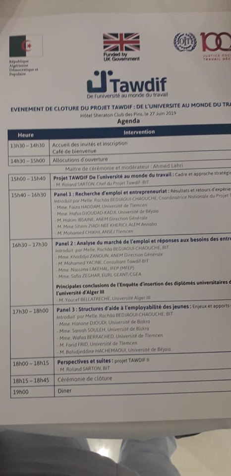 قبل بداية اشغال الندوة الخاصة باختتام مشروع توظيف من الجامعة إلى عالم الشغل التي شاركت فيه جامعة الجزائر 3 ودار المقاولاتية