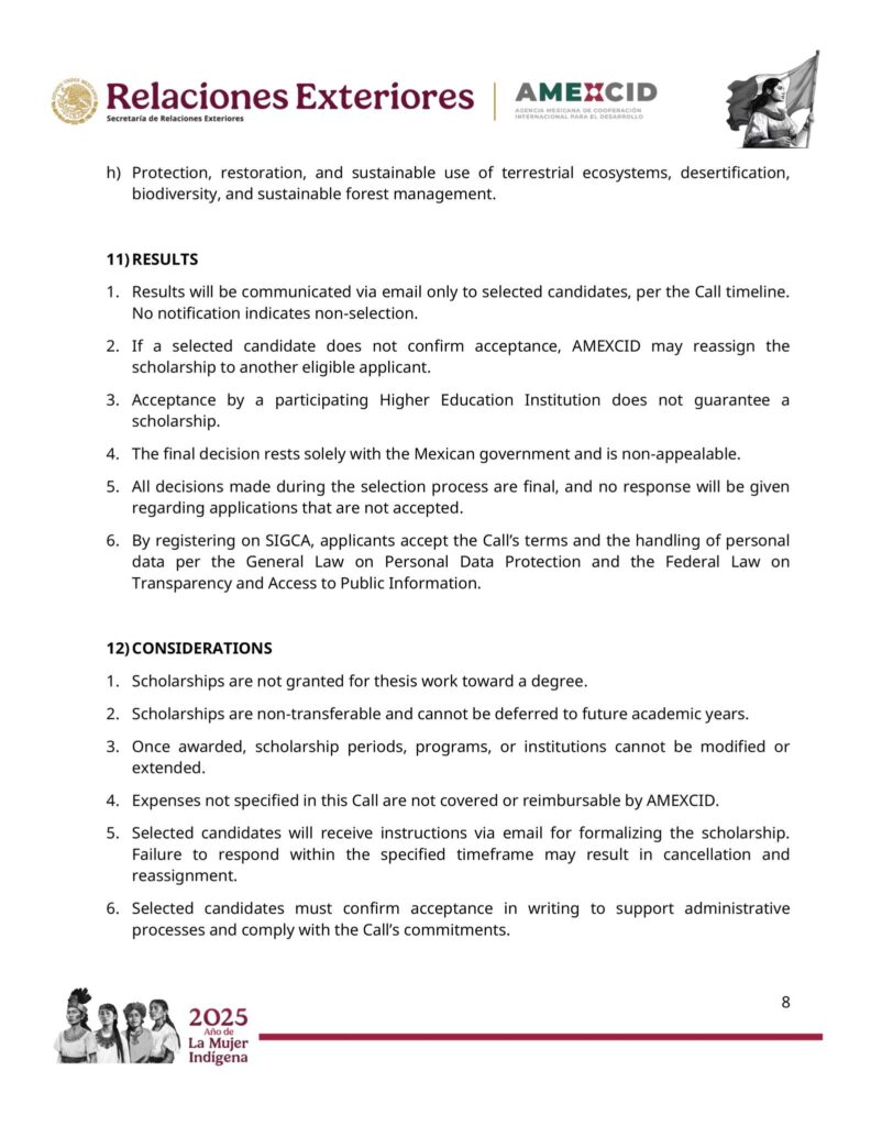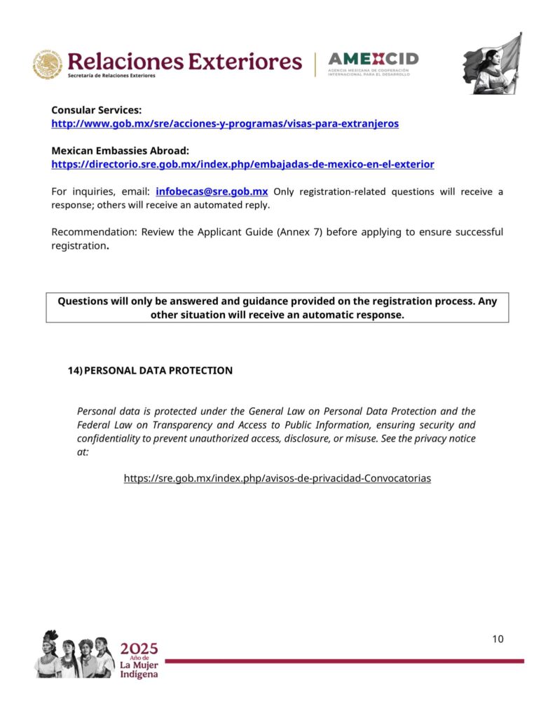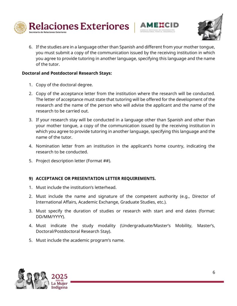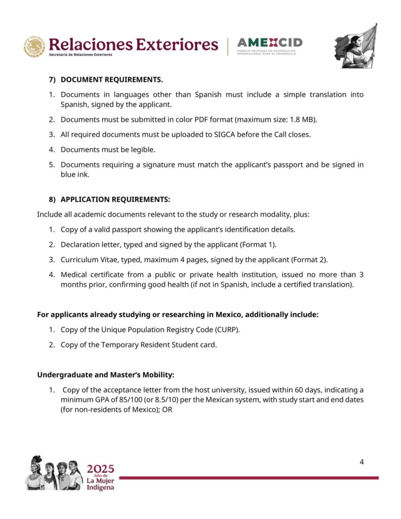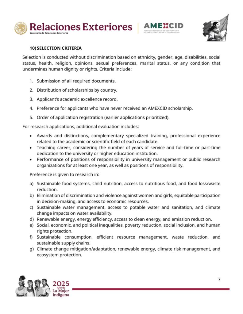 – إعفاء من رسوم التأشيرة- تغطية صحية- تذكرة سفر دولية عند إتمام المنحة بنجاح – نقل داخلي إلى المؤسسة المستضيفة في حال الدراسة خارج العاصمة مكسيكو