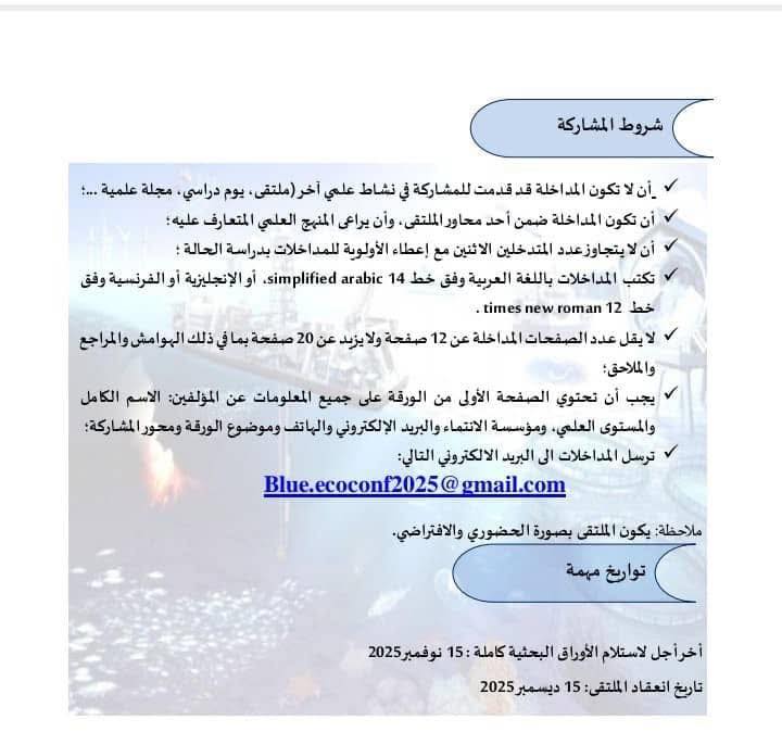 رابط إرسال المشاركات:Blue.ecoconf2025@gmail.com