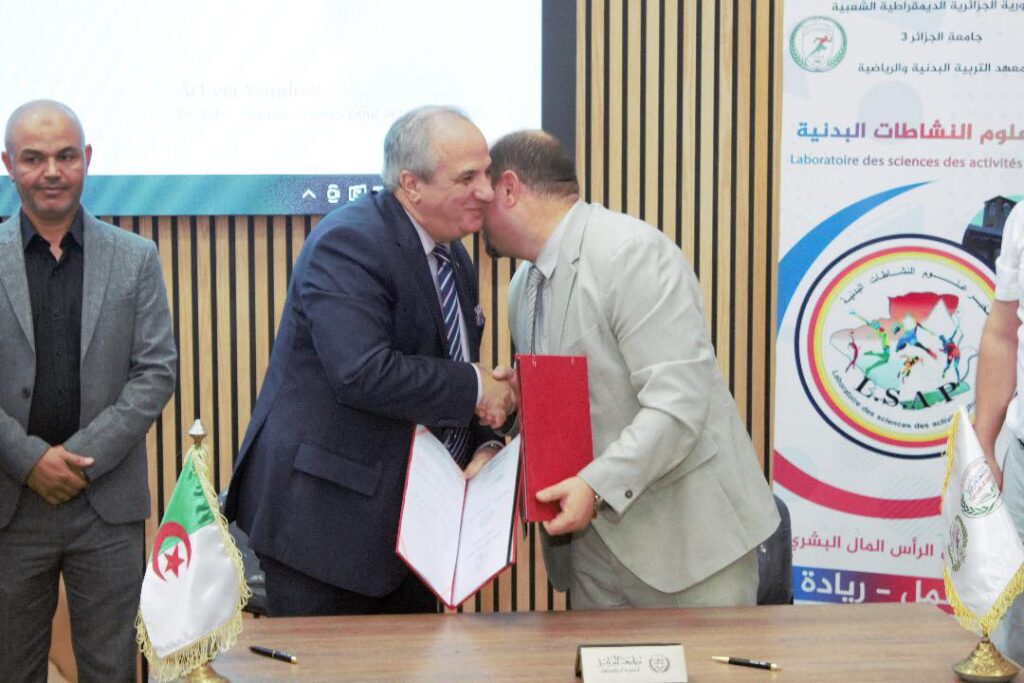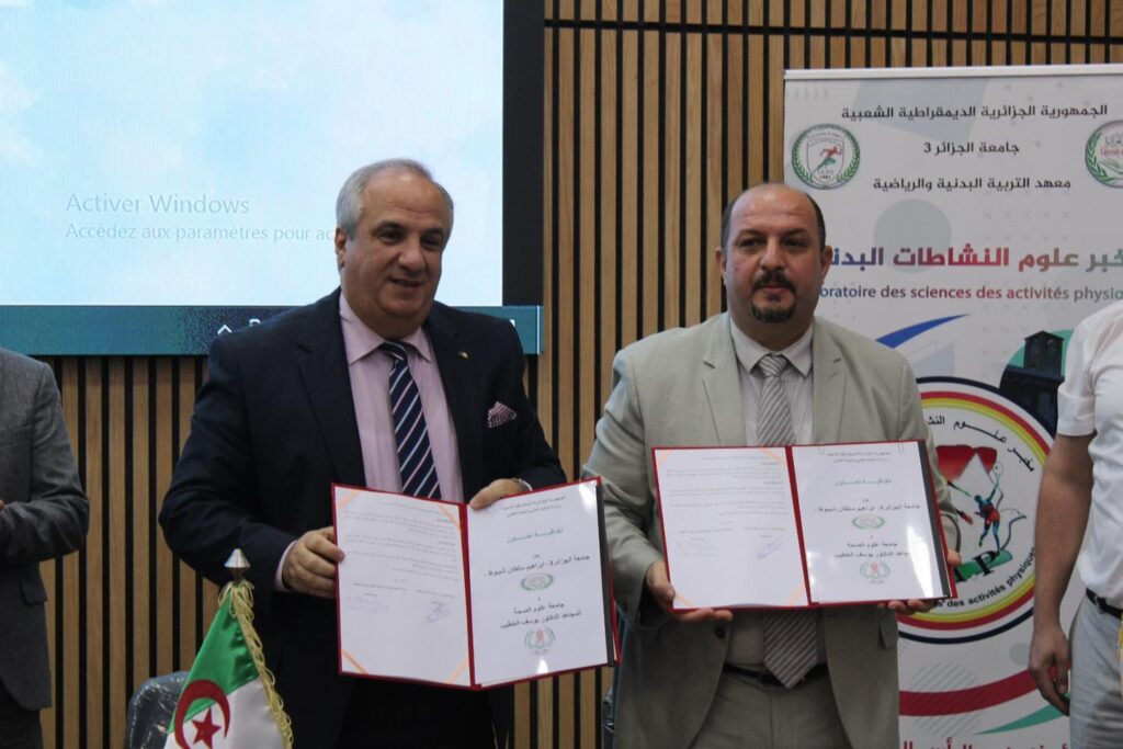 مراسم التوقيع على اتفاقية تعاون بين جامعة الجزائر 3 و جامعة علوم الصحة لتعزيز البحث المشترك وتنمية ومرافقة الطالب والارتقاء بالرياضة الجامعية.