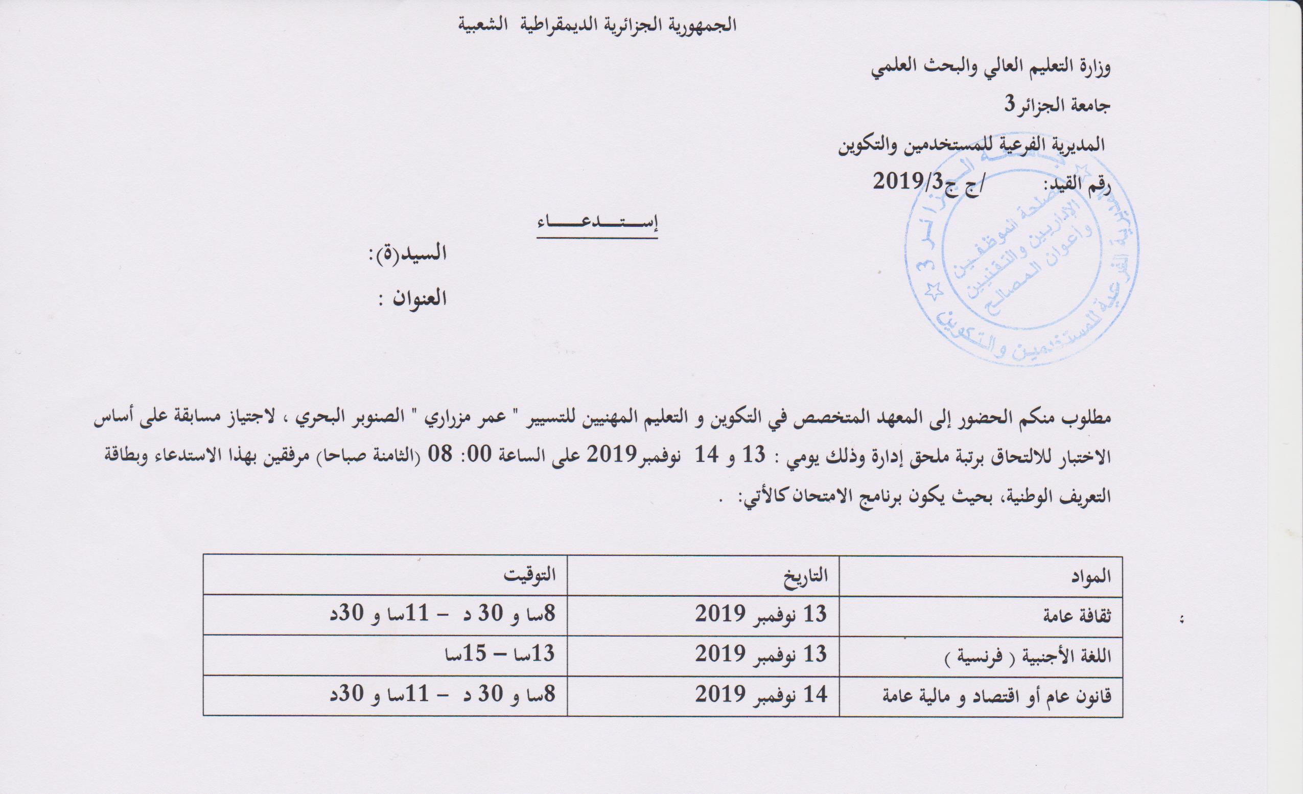 جامعة الجزائر 3 ابراهيم سلطان شيبوط