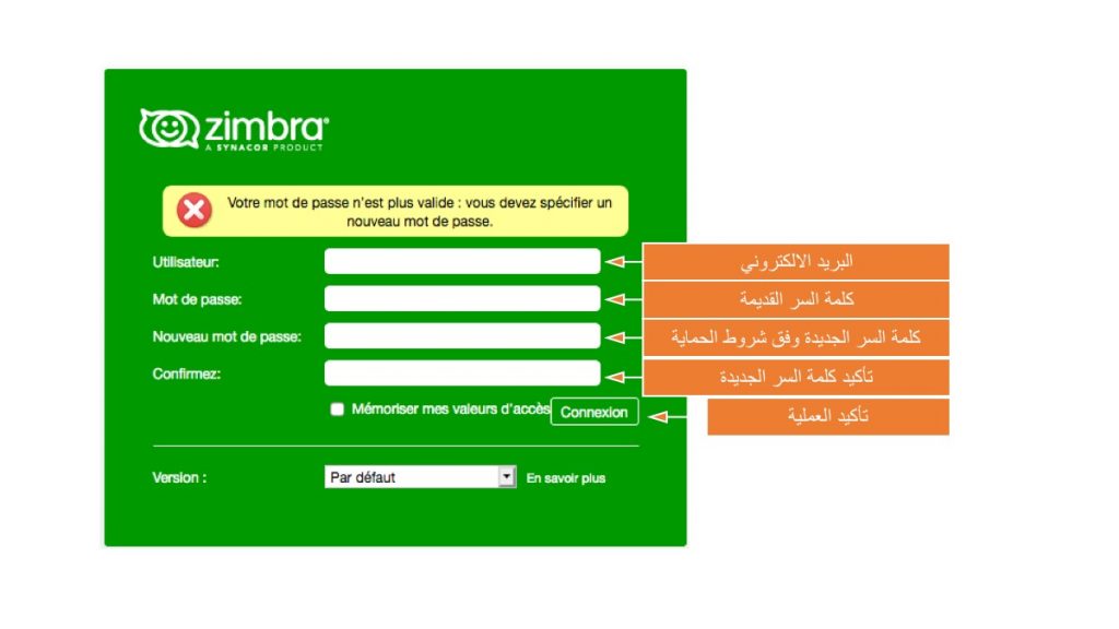 و عليه سيتم توجيهكم عند أول اتصال الى نافذة تغيير كلمة السر التالية: