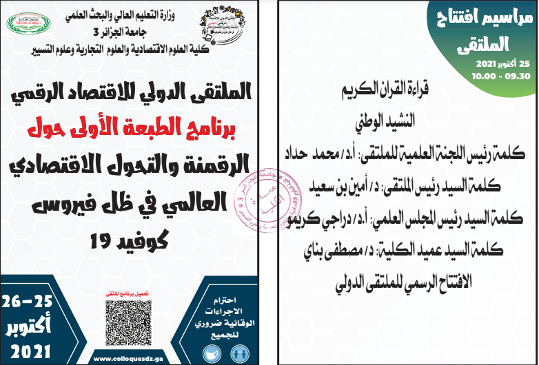 يسر اللجنة العلمية والتنظيمية الملتقى الدولي للاقتصاد الرقمي