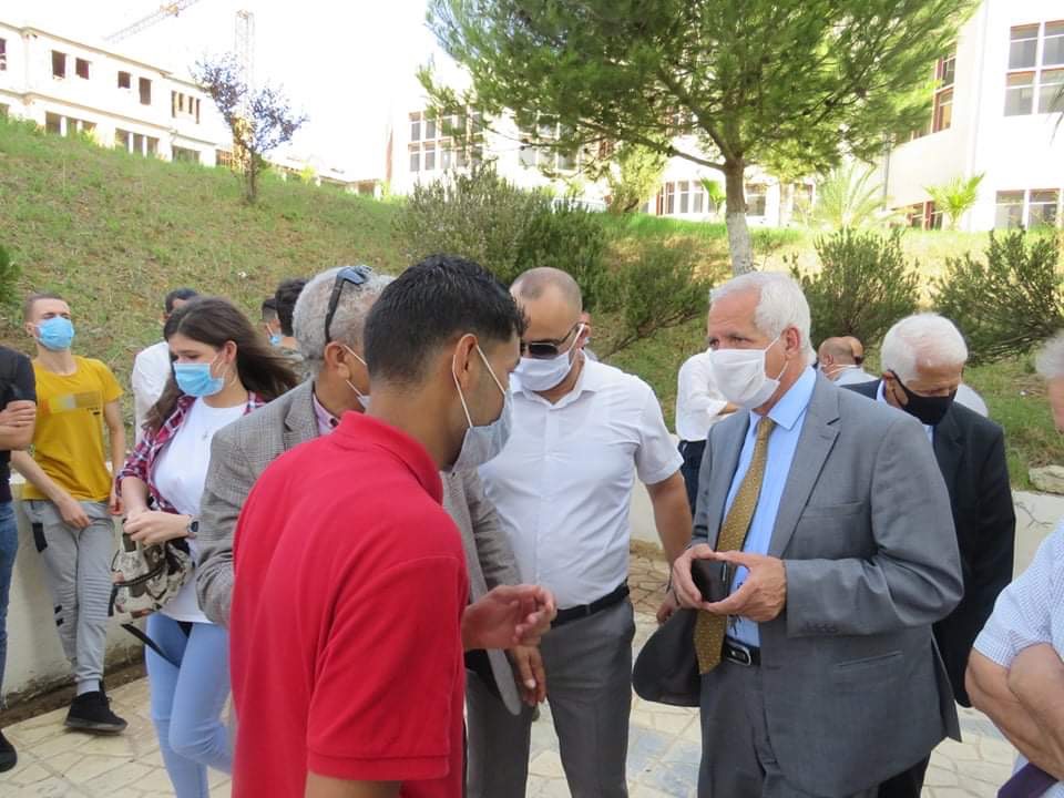 وجه الدكتور مزرق مختار مدير جامعة الجزائر 3 كلمة ترحيب للأسرة الجامعية بمقر الجامعة الكائن بـ: 2، شارع أحمد واكد، دالي ابراهيم بالعاصمة بحضور مسؤولي وإطارات الجامعة والطلبة والعمال وممثلي مختلف وسائل الإعلام، حيث استهل كلمته بالتعبير عن شديد سعادته بهذه اللحظة التي جمعت كافة مكونات الأسرة الجامعية مجددا بعد فراق دام أشهرا عديدة، منوها بالمجهودات المبذولة من طرف الأطقم الإدارية سواء على مستوى رئاسة الجامعة أو الكليات والمعهد ورفعهم للتحدي من أجل استقبال الطلبة والأساتذة في أحسن الظروف من خلال الالتزام الصارم بتطبيق البروتوكول الصحي الذي أعدته الخلية المحلية لمتابعة تسيير نهاية السنة الجامعية 2019/2020 والتحضير للدخول الجامعي المقبل.