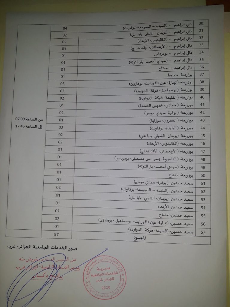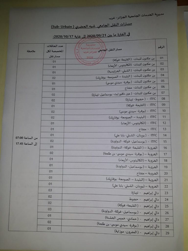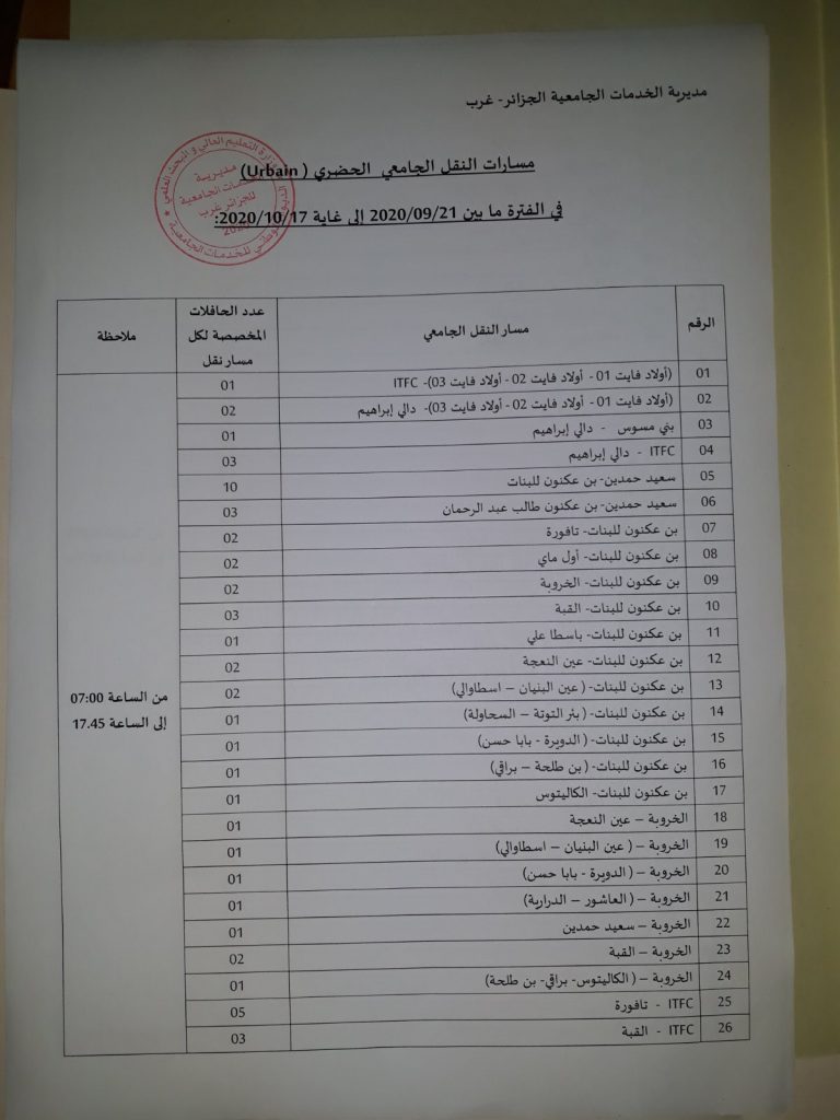 مواقيت نقل الطلبة بولاية الجزائر و ضواحيها في الفترة ما بين 2020/09/21 و 2020/10/17 20 سبتمبر، 2020 أخبار الجامعة 43,502 زيارة شاركها tweet