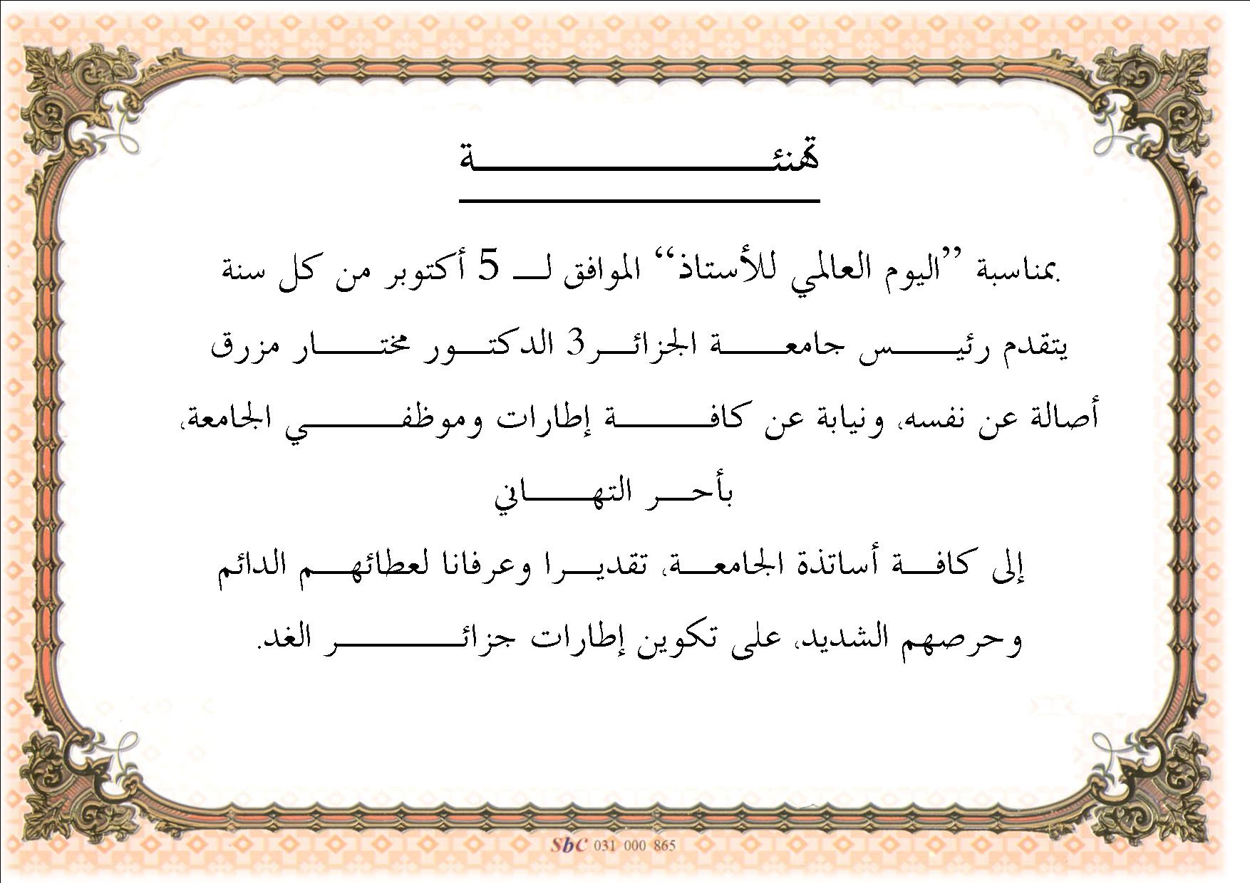تهنئة بمناسبة اليوم العالمي للأستاذ