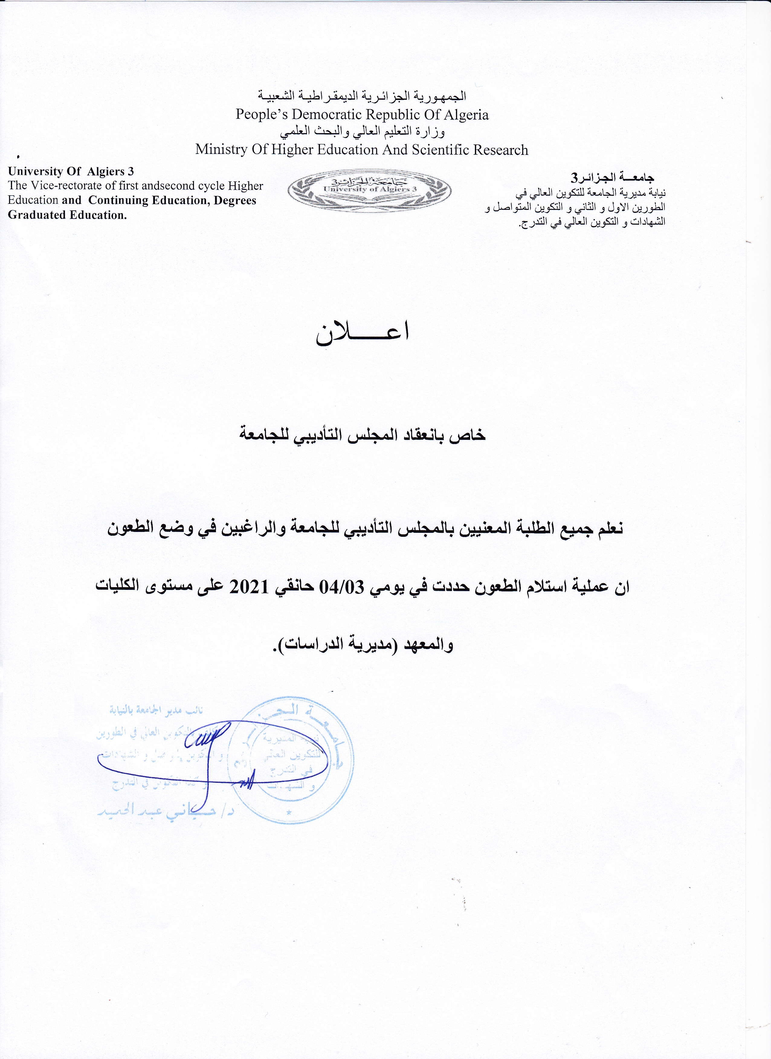 جامعة الجزائر 3 ابراهيم سلطان شيبوط
