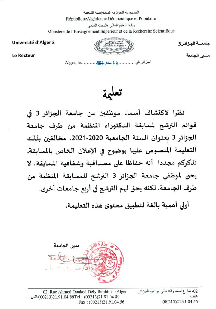 تعليمة 28 يناير، 2021 نيابة مديرية الجامعة لما بعد التدرج و البحث العلمي 3,394 زيارة تعليمة شاركها tweet