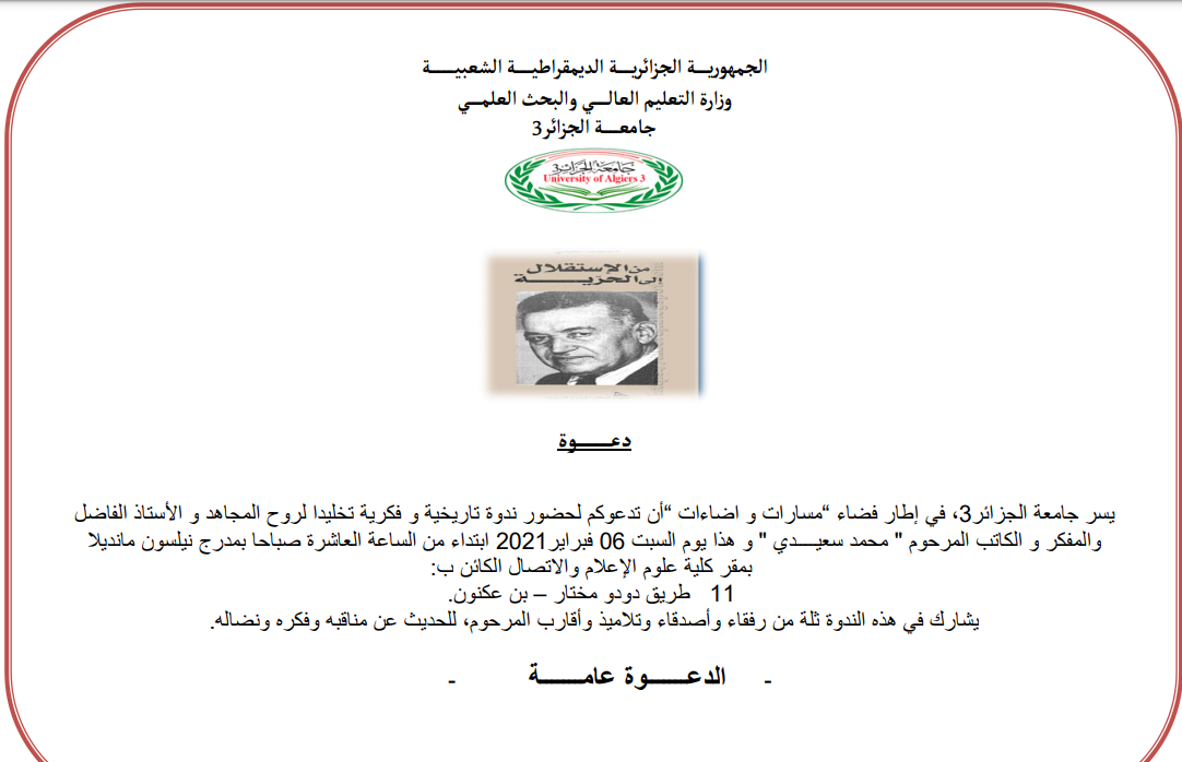 ندوة فكرية وتاريخية تخليدا لروح الاستاذ محمد سعيدي