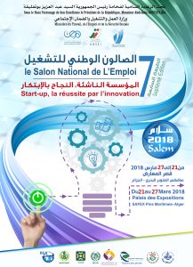 ستنظم وزارة العمل، التشغيل والضمان الاجتماعي، الطبعة السابعة للصالون الوطني للتشغيل (سلام 2018)، وذلك تحت الرعاية السامية لفخامة رئيس الجمهورية السيد عبد العزيز بوتفليقة. ىالصالون سينظم تحت شعار: ” المؤسسة الناشئة: النجاح بالابتكار”، وذلك بقصر المعارض سافكس، الصنوبر البحري، الجزائر.