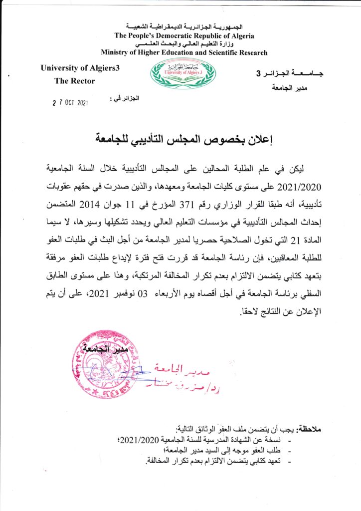 إعلان بخصوص المجلس التأديبي للجامعة 27 أكتوبر، 2021 أخبار الجامعة, المجلس التأديبي 2,496 زيارة شاركها tweet