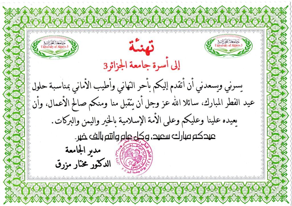 Congratulations on the occasion of Aid El FItr cellulenumalger3 20/04/2023 Bourses d'études Leave a comment 448 Views Related Articles Announcement 14/12/2023 Offer of Scholarships from the Hungarian Government 13/12/2023 Chinese Government Scholarship Program for the 2024/2025 Academic Year 13/12/2023 Share Facebook Twitter Google + Stumbleupon LinkedIn Pinterest