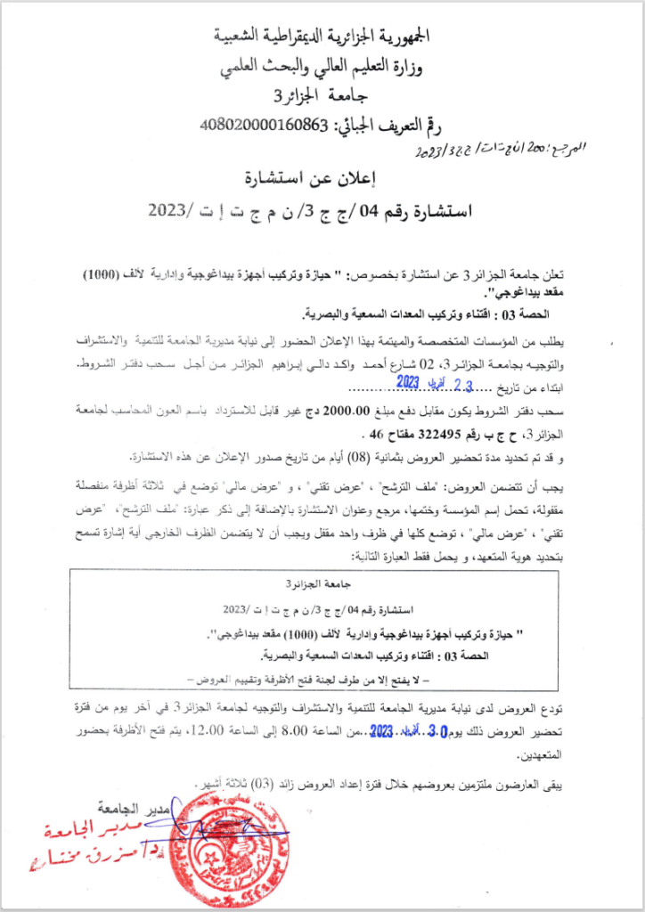 A consultation notice cellulenumalger3 23/04/2023 Bourses d'études Leave a comment 415 Views Related Articles Announcement 14/12/2023 Offer of Scholarships from the Hungarian Government 13/12/2023 Chinese Government Scholarship Program for the 2024/2025 Academic Year 13/12/2023 Share Facebook Twitter Google + Stumbleupon LinkedIn Pinterest