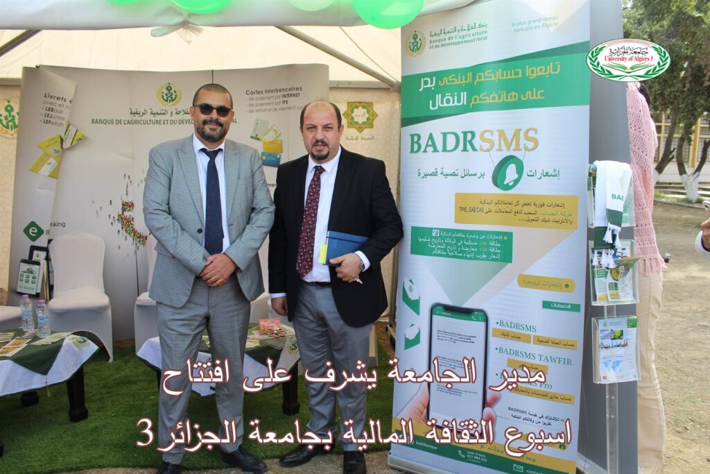 The activities of Financial Culture Week are marked by the organization of open days for the benefit of students at the University of Algiers 3, with the aim of providing them with information on accessing banking and financial services, how to use electronic payments in all their forms, highlighting the advantages of a bank account, presenting the benefits of opening a bank account and using it to take advantage of available financial services.