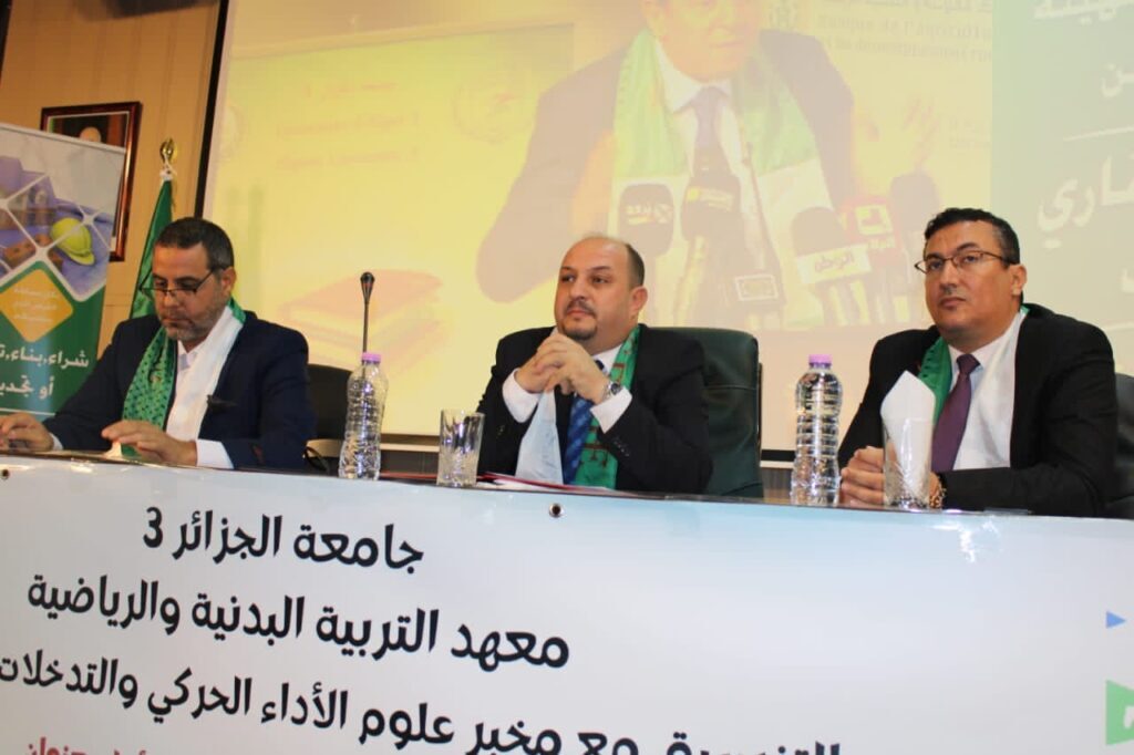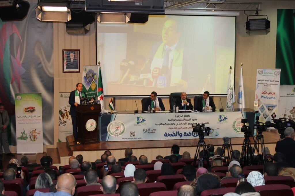 Today, Wednesday November 22nd 2023, the Director of the University of Algiers 3, Professor Khaled Rouaski, inaugurated the proceedings of the first International Scientific Conference on Sports and Health organized by the Motor Performance Sciences and Pedagogical Interventions Laboratory in coordination with the Arab Society of Biomechanics and Motor Behavior and the Arab Society of Sports Management and the Institute of Physical Education and Sports.