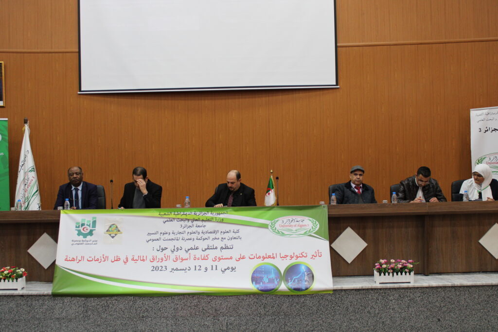 The Director of the University of Algiers 3, Professor Khaled Rouaski, supervised on Monday, December 11, 2023, the opening of the International Conference on the Impact of Information Technology on the Efficiency Level of Financial Markets in the Context of Current Crises, organized by the Faculty of Economics, Business and Management Sciences in collaboration with the Globalization and Economic Policies Laboratory and the Governance and Modernization of Public Management Laboratory, in the presence of professors from foreign and national universities.