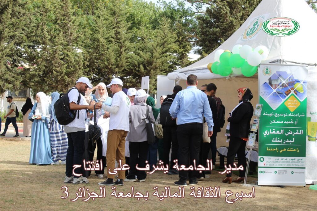 Les activités de la Semaine de la culture financière sont marquées par l’organisation de journées portes ouvertes au profit des étudiants de l’université d’Alger 3, dans le but de leur fournir des informations sur l’accès aux services bancaires et financiers, les modalités d’utilisation des paiements électroniques sous toutes leurs formes, la mise en avant des avantages du compte bancaire, la présentation des avantages de l’ouverture d’un compte bancaire et de son utilisation pour bénéficier des services financiers disponibles.